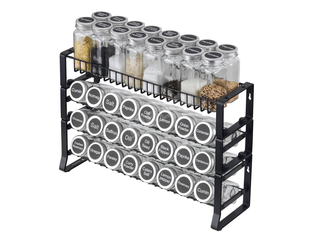 Viacúrovňová štruktúra úhľadne usporiada a vystaví vaše fľaše s korením, čím sa zníži neporiadok a zároveň sa maximalizuje priestor na pracovnej doske na každodenné varenie a iné činnosti.