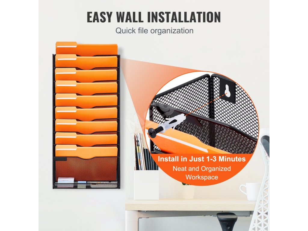Vylepšite svoju kanceláriu pomocou nášho nástenného organizéra na dokumenty. Štýlové riešenie, ktoré šetrí miesto, udrží vaše súbory na dosah ruky. Rýchlo sa inštaluje a je navrhnutý pre efektívnosť, je ideálnou kombináciou funkcie a vkusu pre pracovný stôl bez neporiadku.