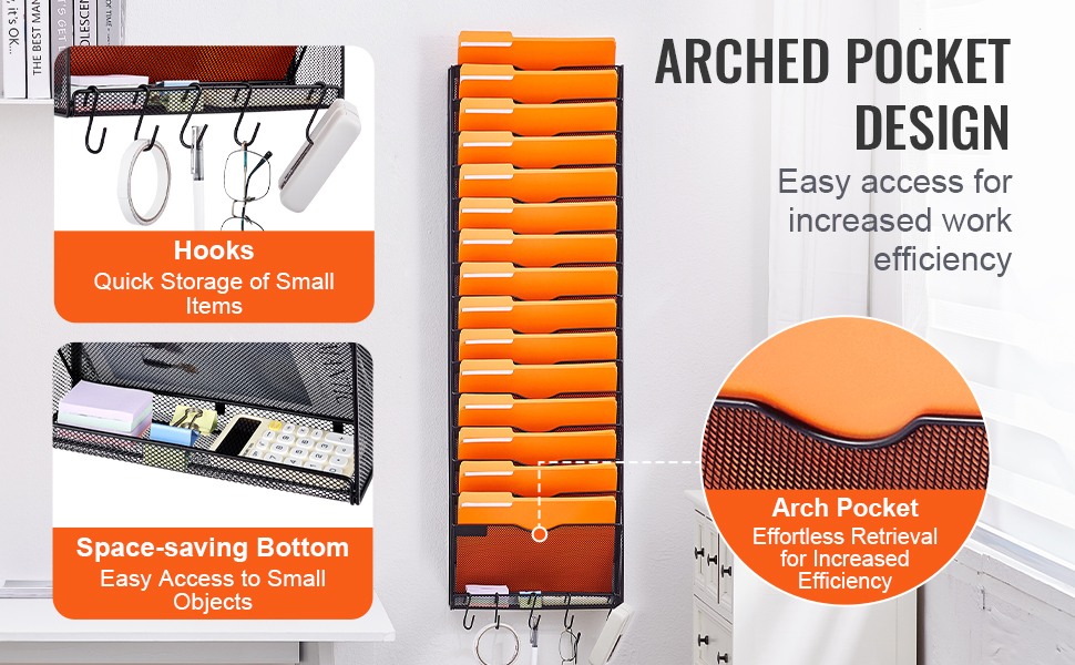 Pohodlný dizajn zakrivených vreciek nášho nástenného organizéra súborov umožňuje plynulú manipuláciu so súbormi, čím zvyšuje efektivitu práce.