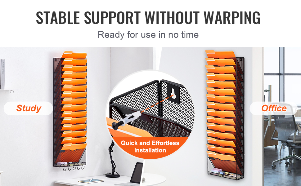 Vďaka jednoduchému postupu je náš kovový nástenný držiak na dokumenty rýchlo na stene, čím uvoľní váš stôl a vnesie dôveru v produktivitu vášho kancelárskeho života.