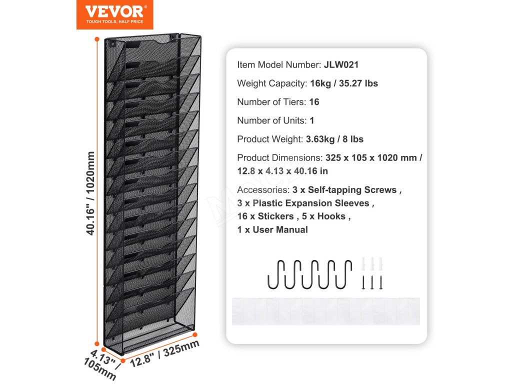Tento nástenný organizér dokumentov, vyrobený z prvotriedneho, odolného kovu, ponúka pevnú oporu, ktorá odolá skúške časom, čím zaručuje, že je pripravený na všetky vaše kancelárske úlohy.