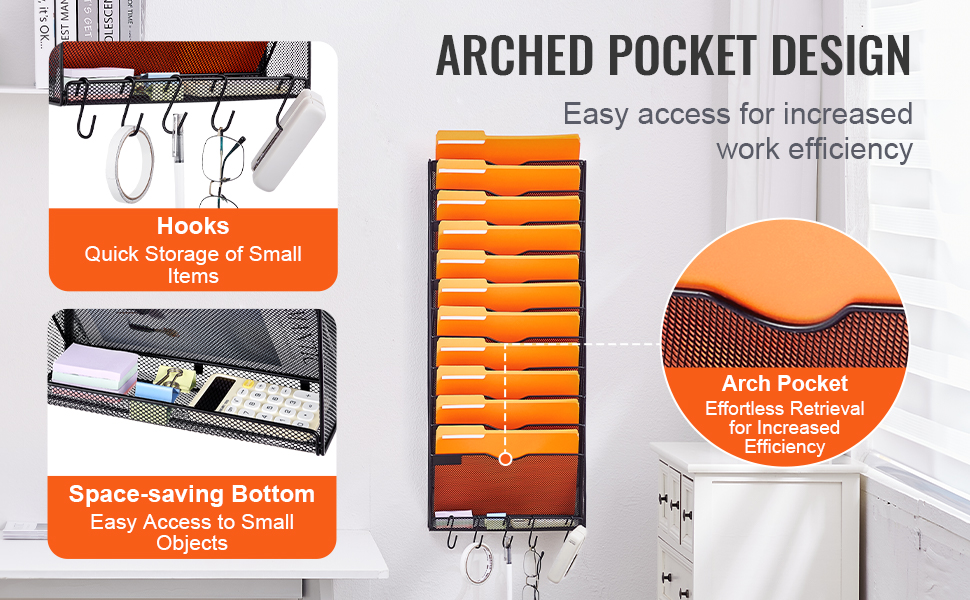 Pohodlný dizajn zakrivených vreciek nášho nástenného organizéra súborov umožňuje plynulú manipuláciu so súbormi, čím zvyšuje efektivitu práce.