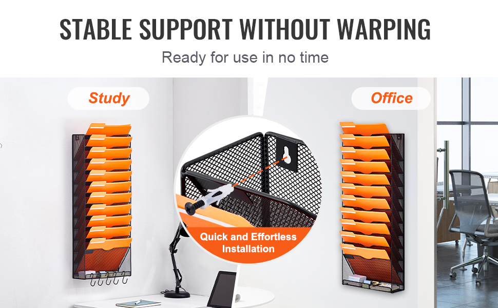 Vďaka jednoduchému postupu je náš kovový nástenný držiak na dokumenty rýchlo na stene, čím uvoľní váš stôl a vnesie dôveru v produktivitu vášho kancelárskeho života.