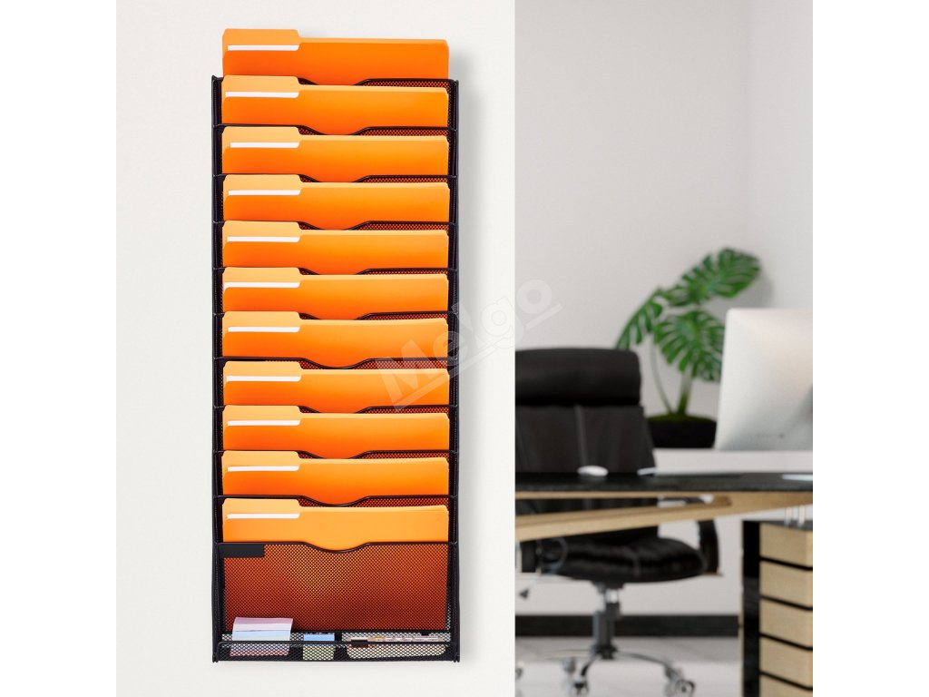 Vylepšite svoju kanceláriu pomocou nášho nástenného organizéra na dokumenty. Štýlové riešenie, ktoré šetrí miesto, udrží vaše súbory na dosah ruky. Rýchlo sa inštaluje a je navrhnutý pre efektívnosť, je ideálnou kombináciou funkcie a vkusu pre pracovný stôl bez neporiadku.