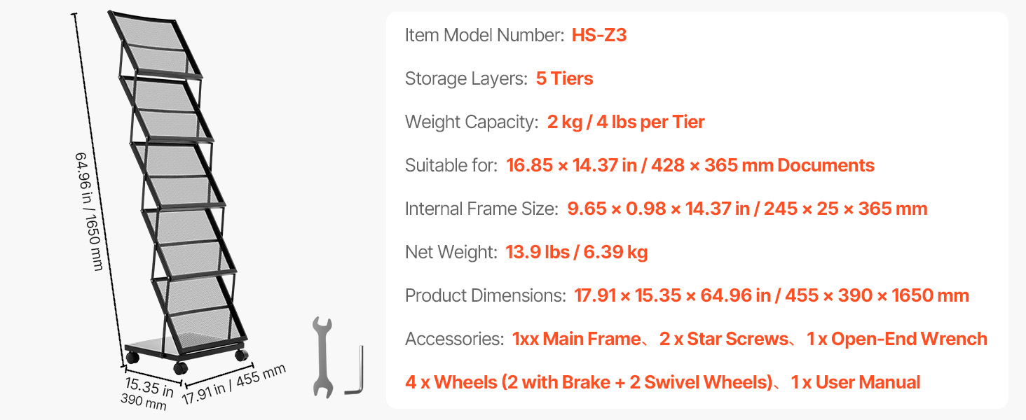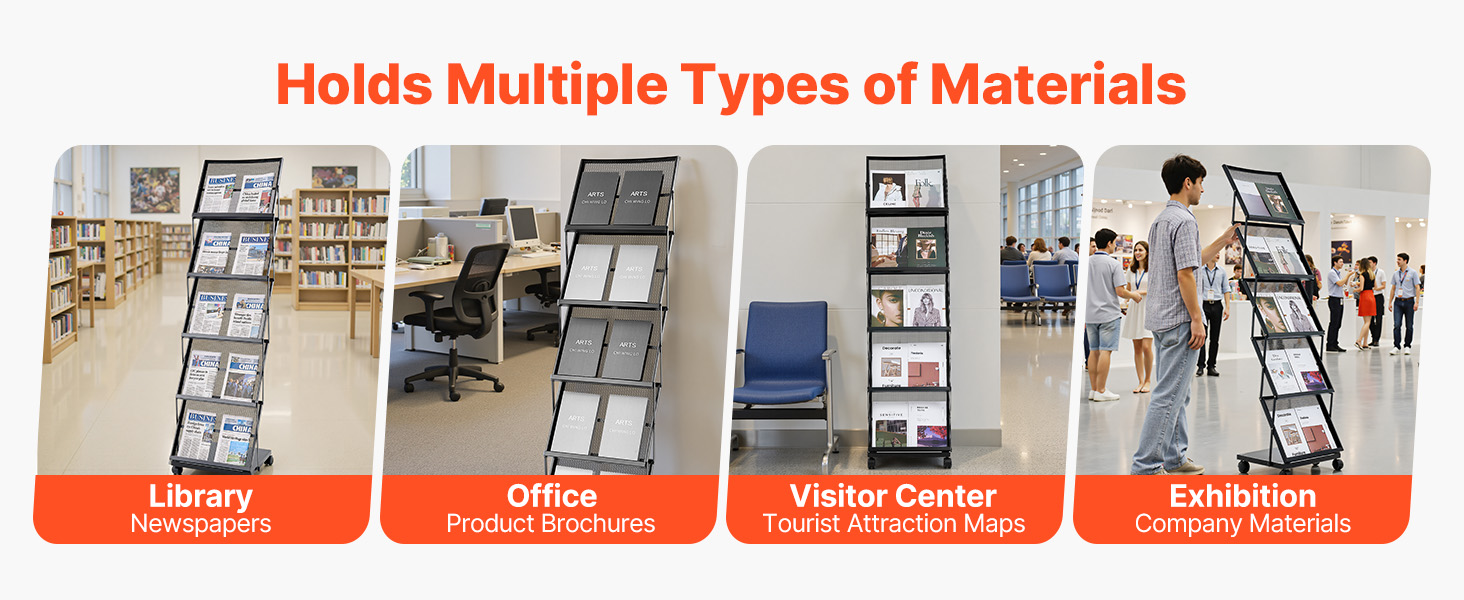 Vhodný na ukladanie a vystavovanie rôznych typov materiálov vrátane dokumentov, brožúr, časopisov, príručiek atď. Spĺňa potreby rôznych scenárov použitia a má dostatok priestoru, ktorý vám pomôže efektívne spravovať a vystavovať rôzne materiály.