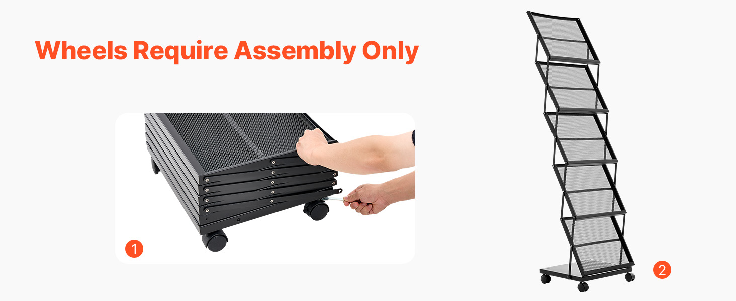 Nie je potrebné žiadne zložité náradie. Dokonca aj začínajúci používatelia ho môžu ľahko obsluhovať. Žiadne čakanie - užite si pohodlie stojaceho držiaka na časopisy v krátkom čase.
