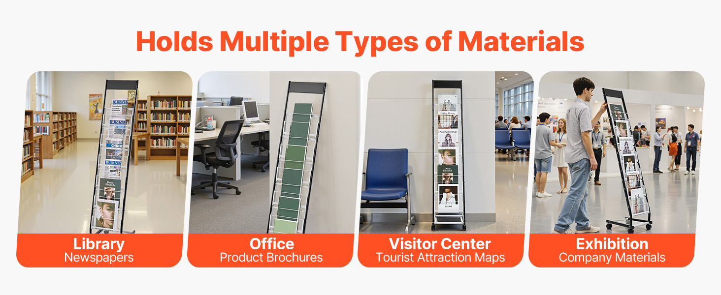 Vhodný na ukladanie a vystavovanie rôznych typov materiálov vrátane dokumentov, brožúr, časopisov, príručiek atď. Spĺňa potreby rôznych scenárov používania a má dostatok priestoru, ktorý vám pomôže efektívne spravovať a vystavovať rôzne materiály.
