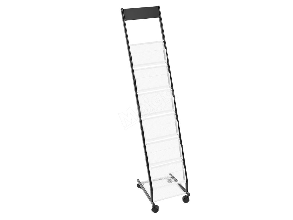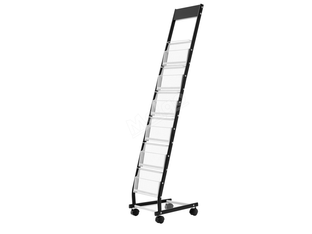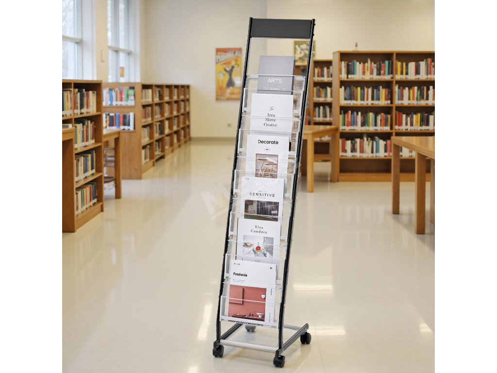 Stojan na brožúry, kovový, 6 priečinkov, stojací na kolieskach