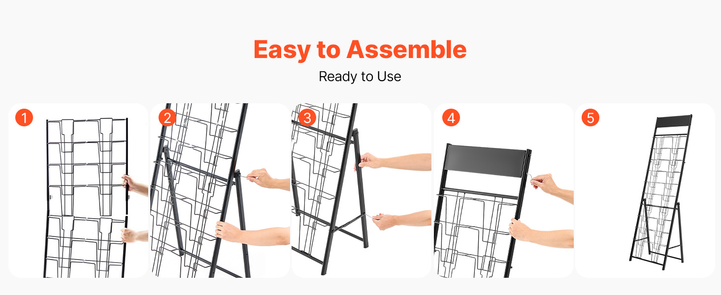 Nie je potrebné žiadne zložité náradie. Dokonca aj začínajúci používatelia ho môžu ľahko obsluhovať. Žiadne čakanie - užite si pohodlie stojaceho držiaka na časopisy v krátkom čase.