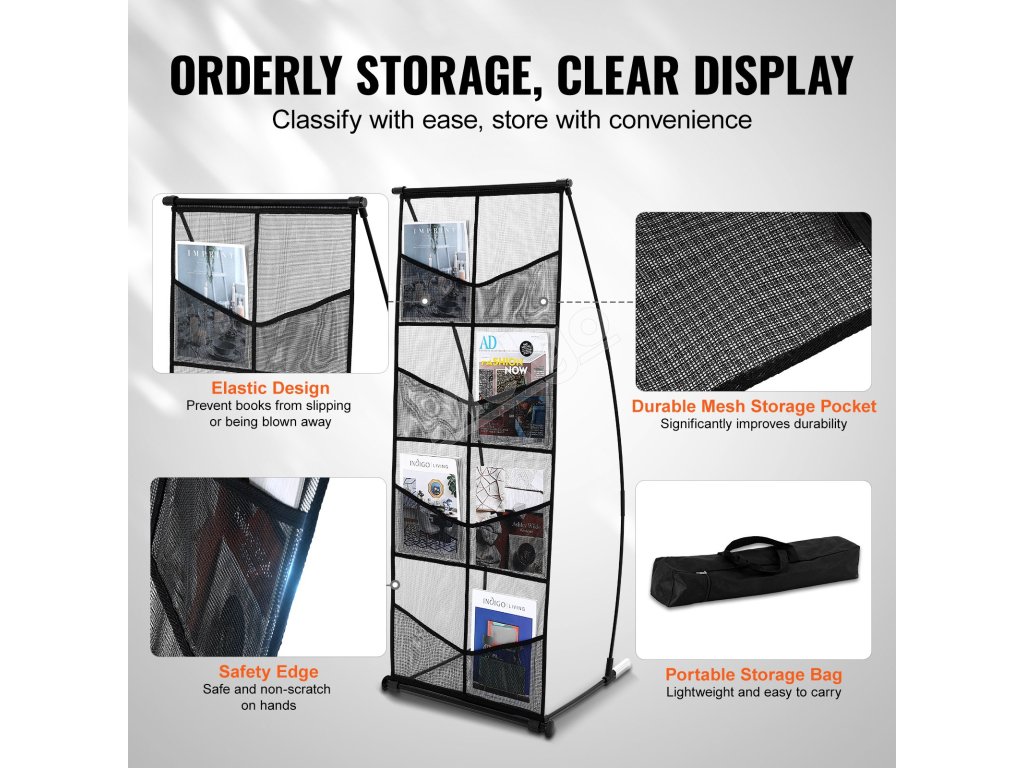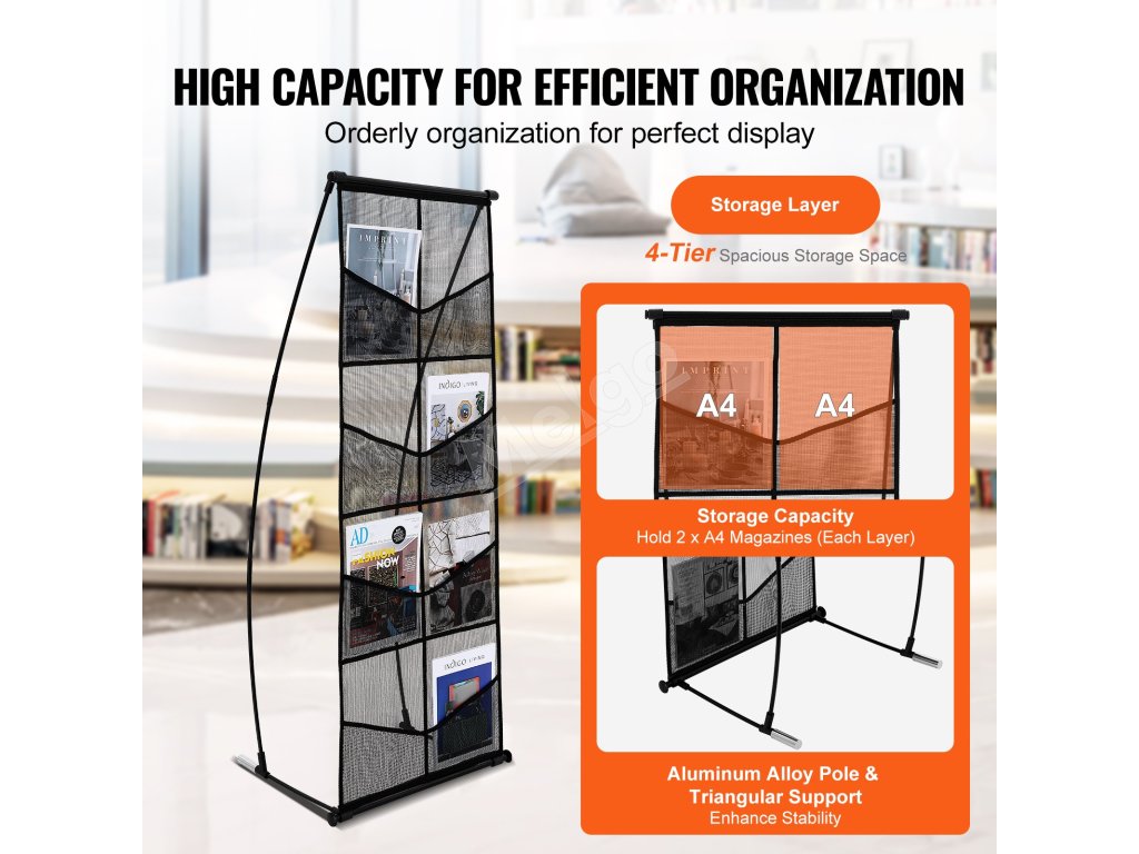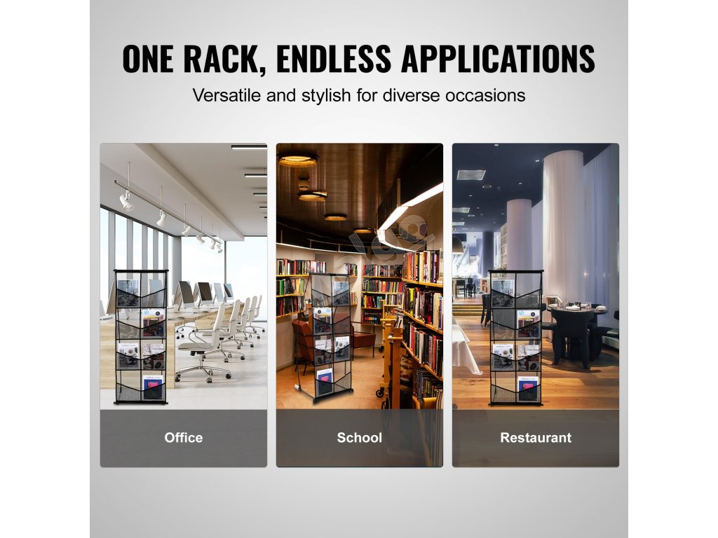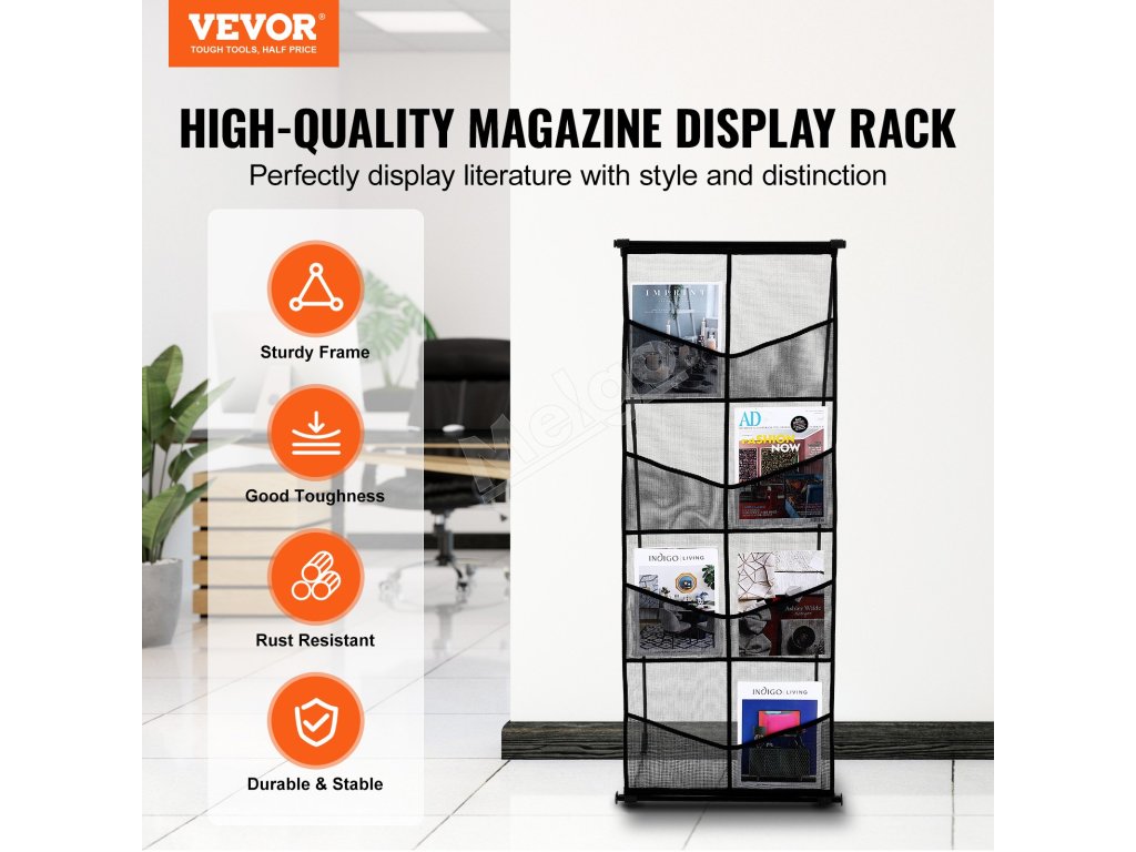 Majte všetky svoje propagačné materiály usporiadané a vystavené! Stojan na časopisy VEVOR sa môže pochváliť 8 priestrannými úložnými vreckami, pričom do každého poschodia sa zmestia 2 časopisy formátu A4, čo zaručuje dostatok priestoru na prezentáciu vašich časopisov, brožúr a zložiek.