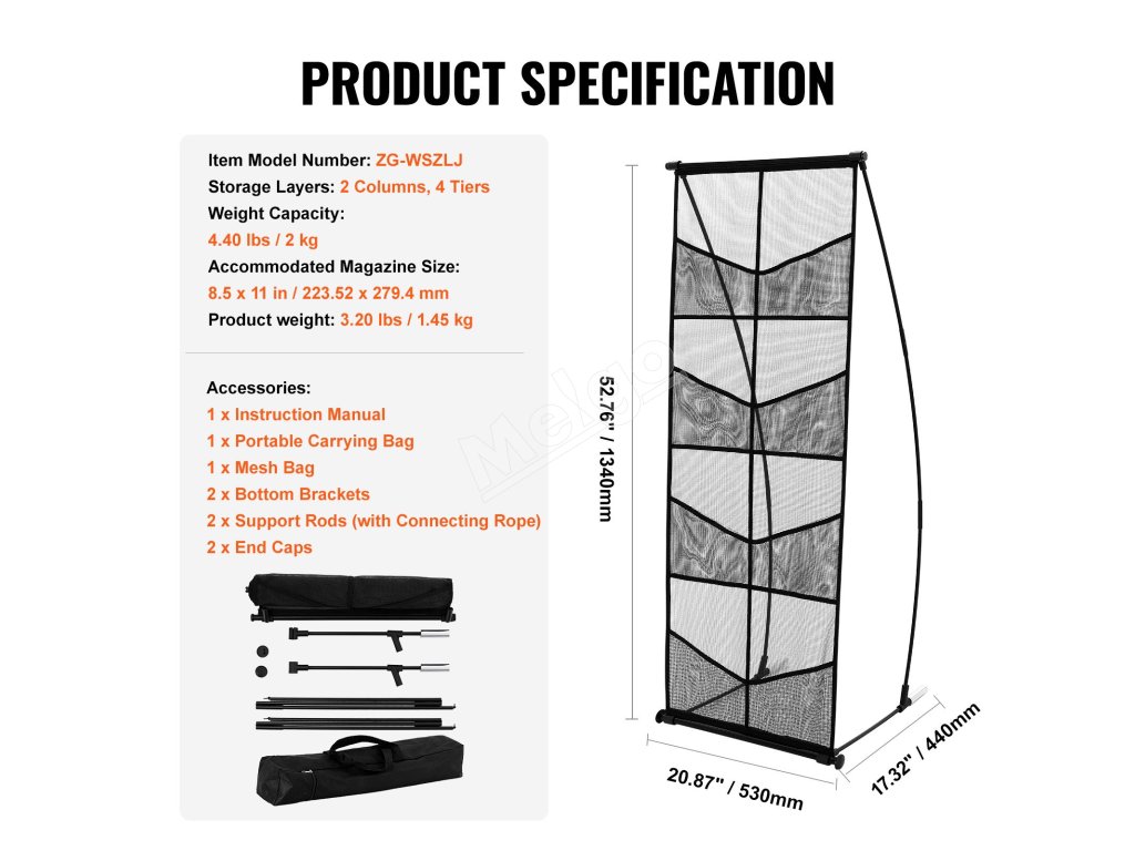 Perfektne vystavte brožúru pomocou 4-úrovňového sieťového stojana VEVOR s 8 vreckami. Je navrhnutý s vysokou kvalitou, odolnosťou a všestrannosťou, ponúka dostatok úložného priestoru, ohľaduplný dizajn a dokonalý efekt vystavenia. Vyberte si náš výstavný stojan, ktorý povýši každý časopis na výrazný stredobod pozornosti!