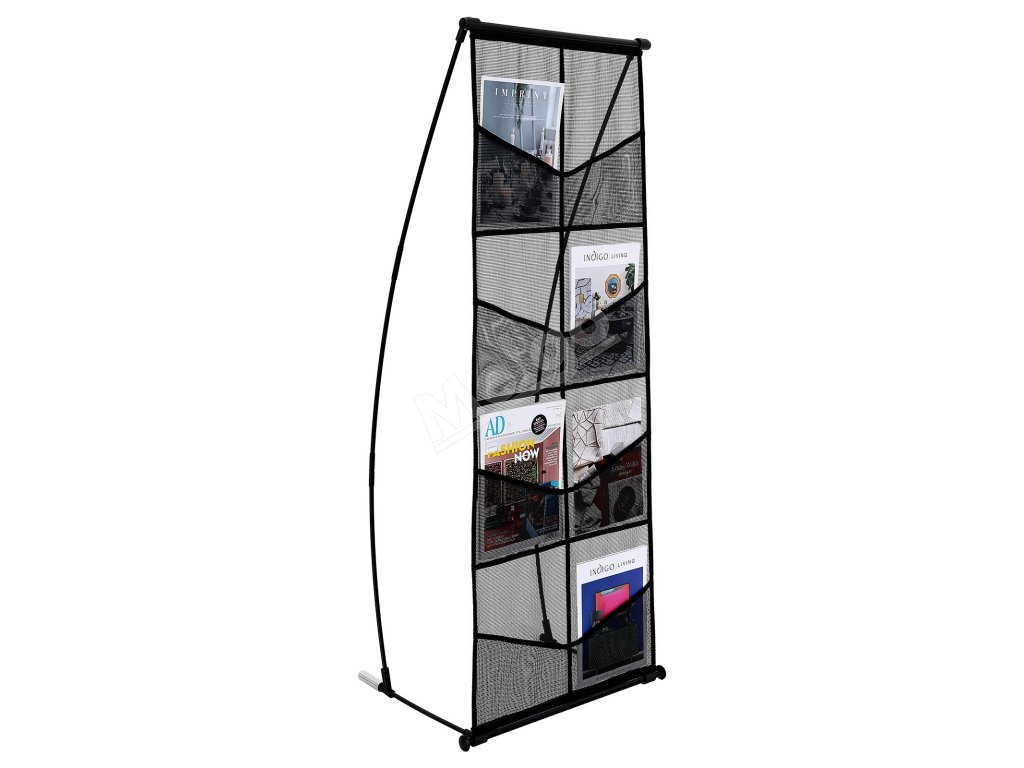Stojan na brožúry 4 úrovne, 8 priehradiek, kovový prenosný s taškou