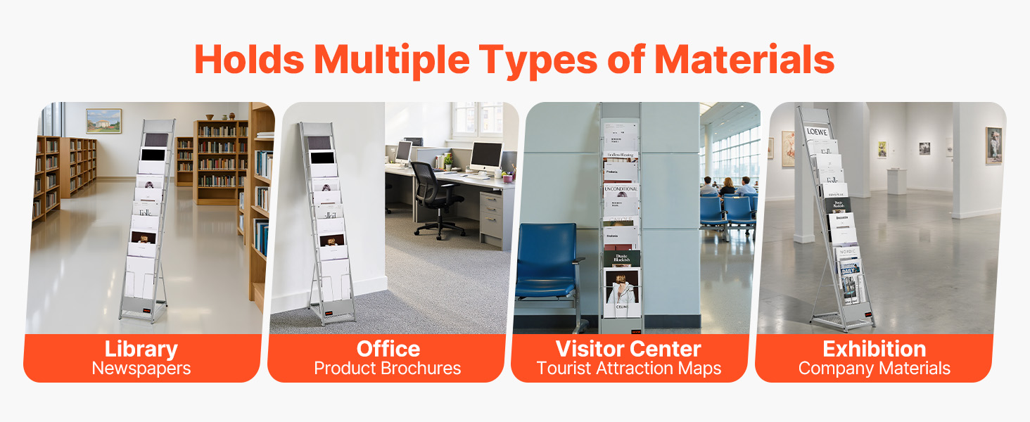Vhodný na ukladanie a vystavovanie rôznych typov materiálov vrátane dokumentov, brožúr, časopisov, príručiek atď. Spĺňa potreby rôznych scenárov používania a má dostatok priestoru, ktorý vám pomôže efektívne spravovať a vystavovať rôzne materiály.