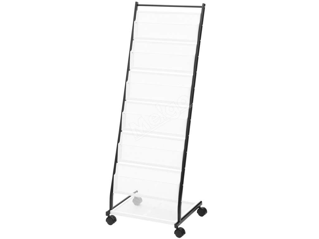 Stojan na časopisy, 6 priehradiek, na podlahu, 4 kolieska (2 brzdové)