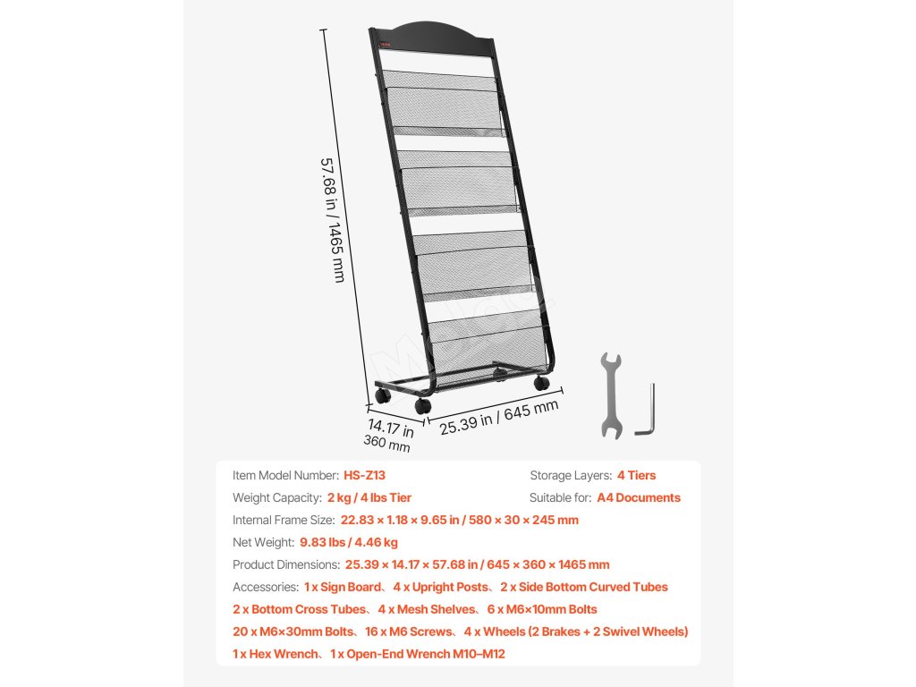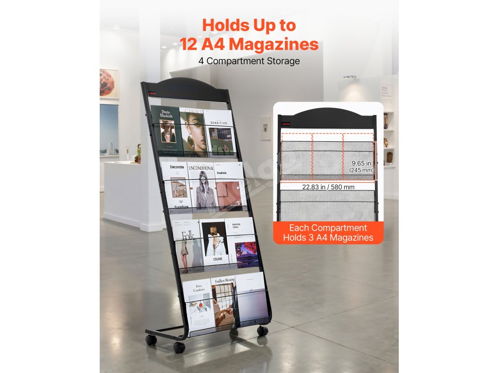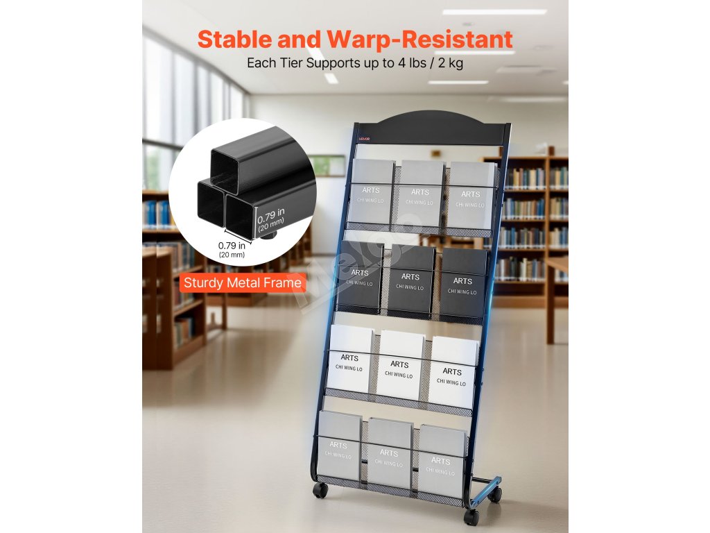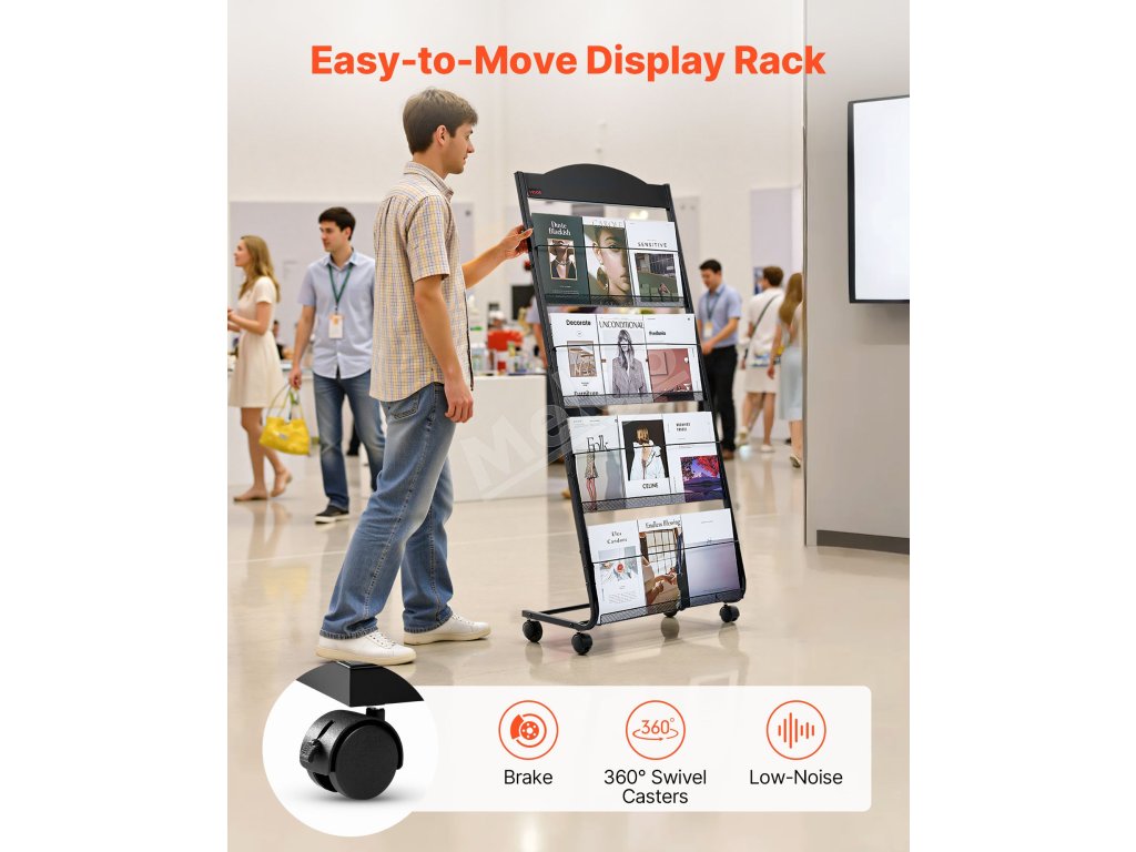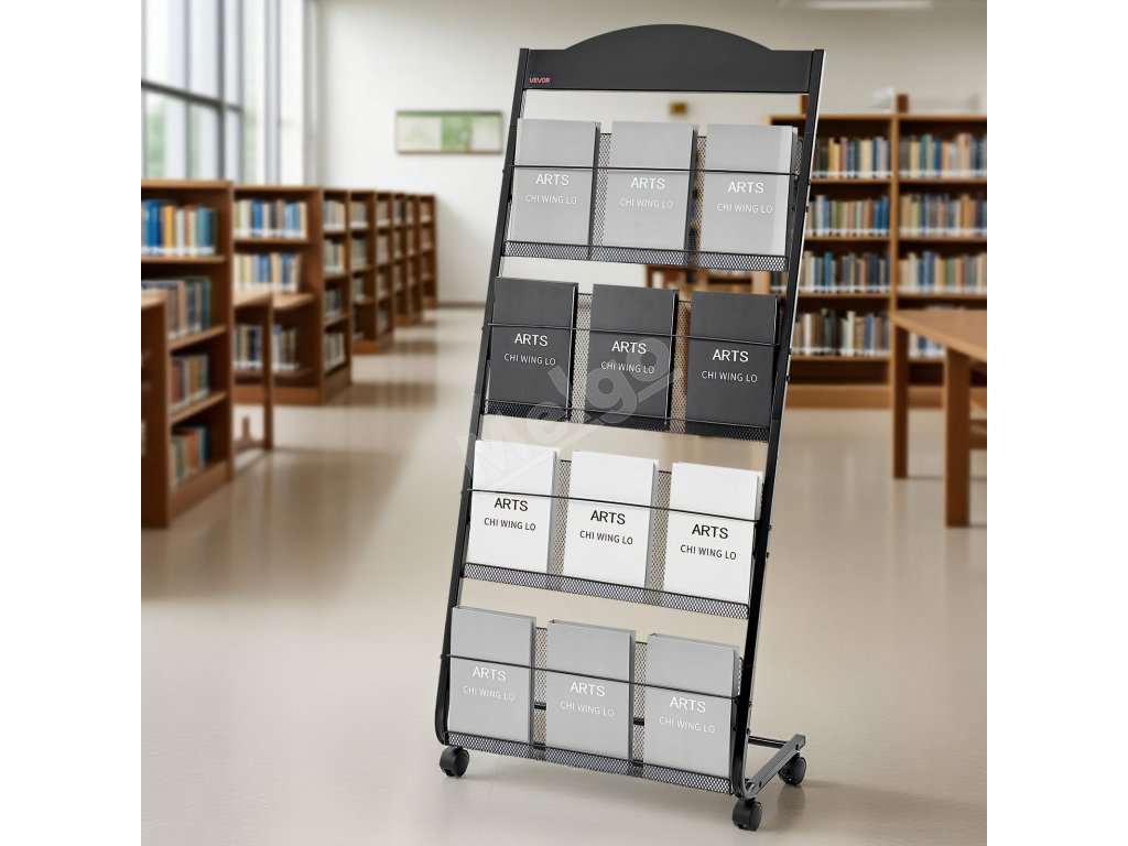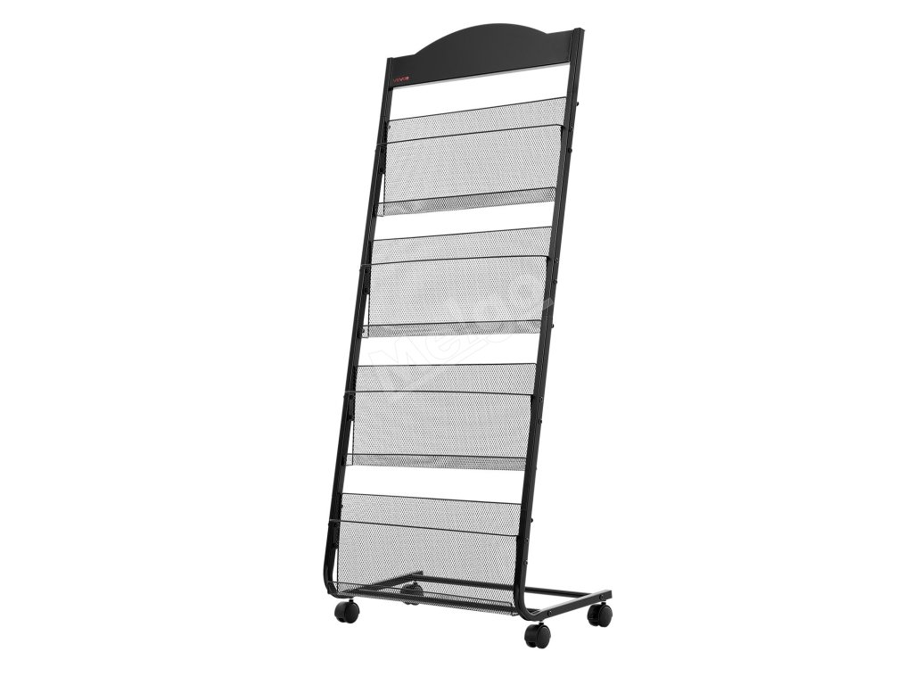 Stojan na časopisy a brožúry, 4-poschodový, na kolieskach, prenosný