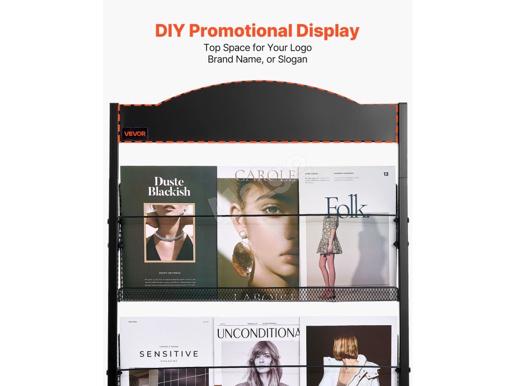 Každá vrstva unesie až 4 lbs/2 kg, čím ľahko podporí dokumenty, materiály a brožúry rôznej hrúbky. Aj pri viacerých zložkách uložených na sebe stojí stojan na vystavenie literatúry pevne bez obáv z pádu alebo naklonenia. Silná nosnosť zaručuje stabilitu a spoľahlivosť.