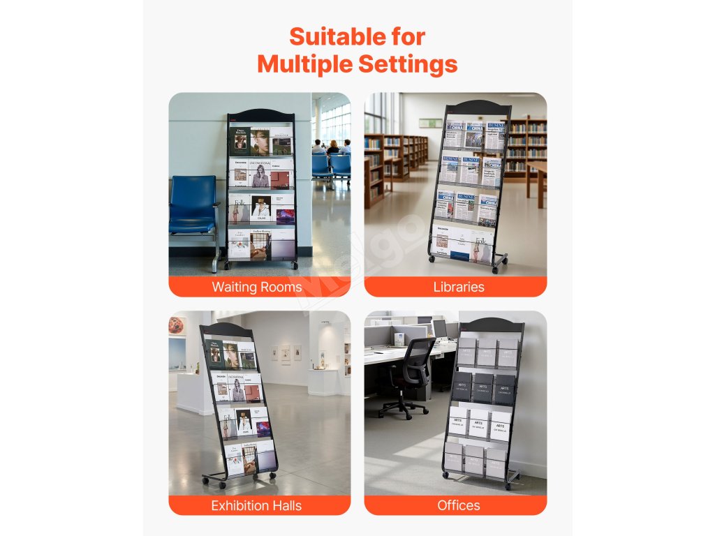 Vhodný na ukladanie a vystavovanie rôznych typov materiálov vrátane dokumentov, brožúr, časopisov, príručiek atď. Spĺňa potreby rôznych scenárov použitia a má dostatok priestoru, ktorý vám pomôže efektívne spravovať a vystavovať rôzne materiály.
