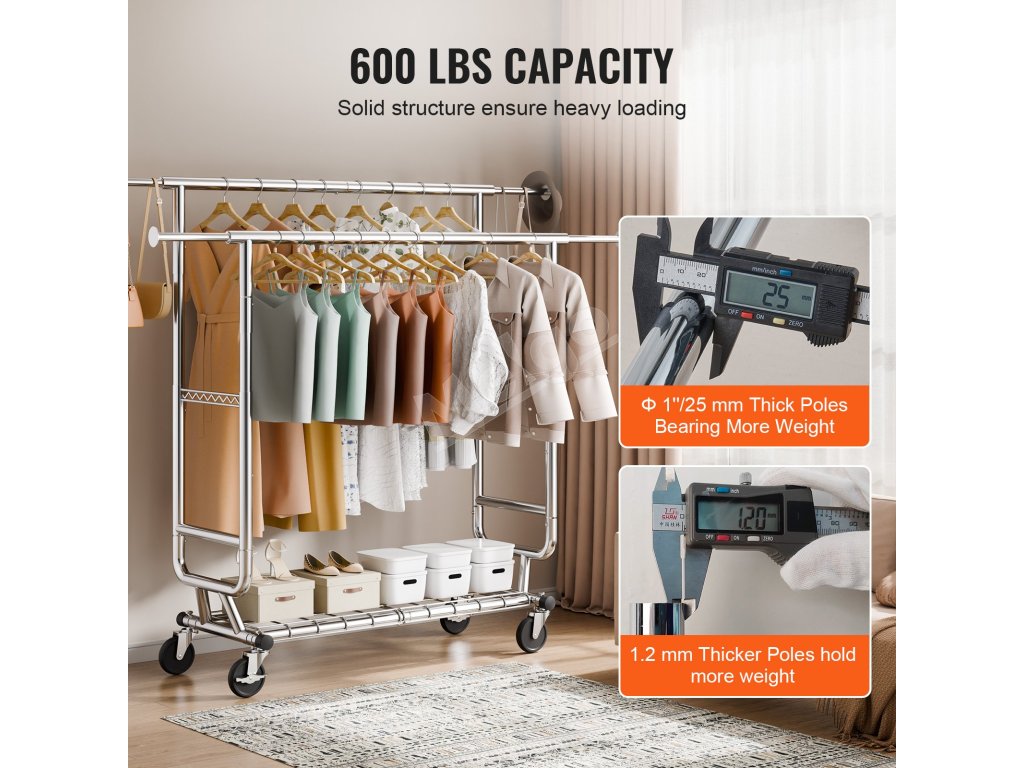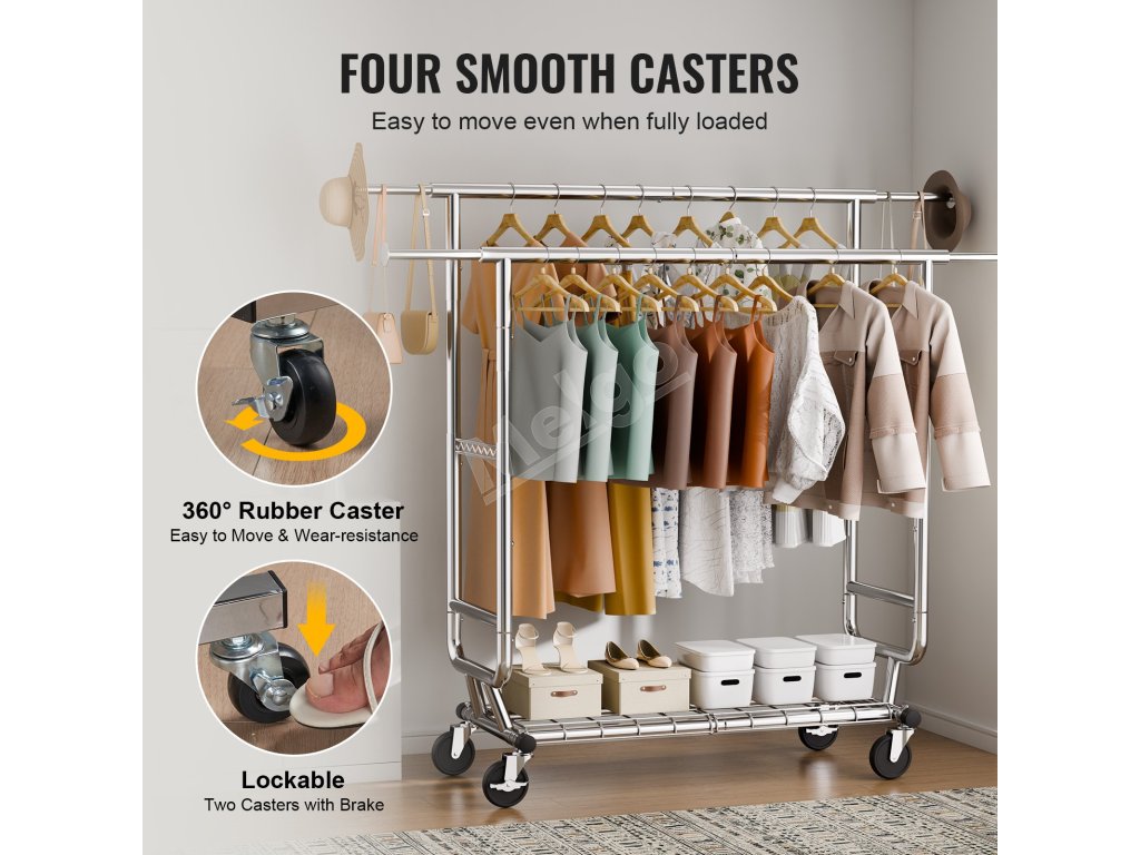 Stojan na oblečenie, dvojitá tyč, nastaviteľný, nosnosť 272,2 kg