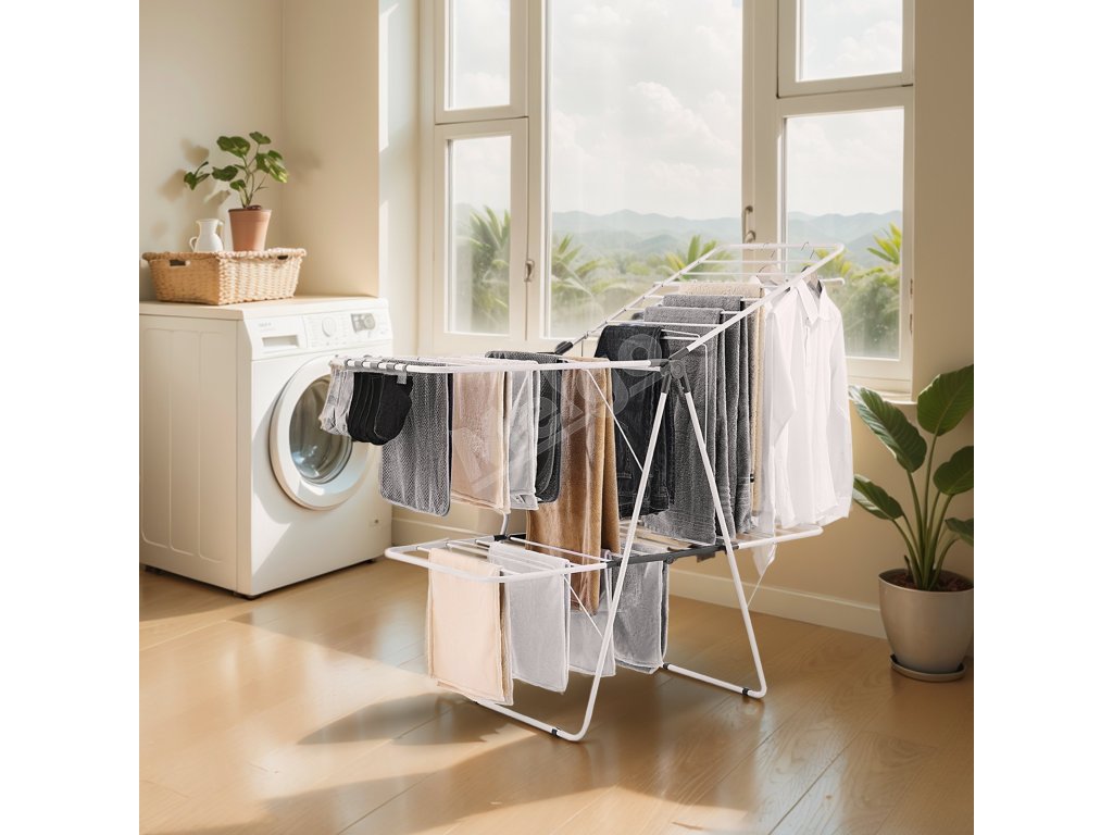 Sušiak na bielizeň, skladací 2-poschodový, 31 tyčí, stojací, biely