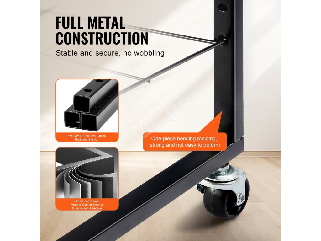 Kolieska sú vyrobené z odolného materiálu PP, čo zaručuje dlhodobú životnosť. Otočné kolieska uľahčujú pohyb stojana na umenie a vďaka brzdám zostáva bezpečne na mieste. Jednoducho zablokujte dve brzdy, aby ste udržali sušiak stabilný tam, kde ho potrebujete.