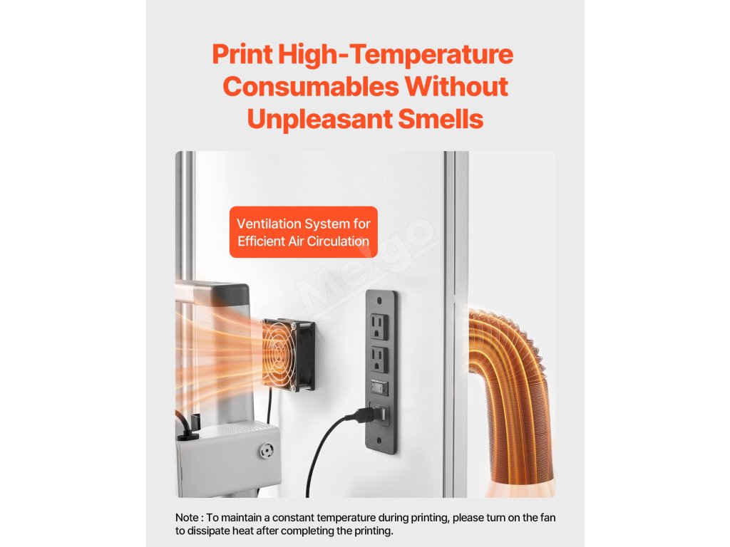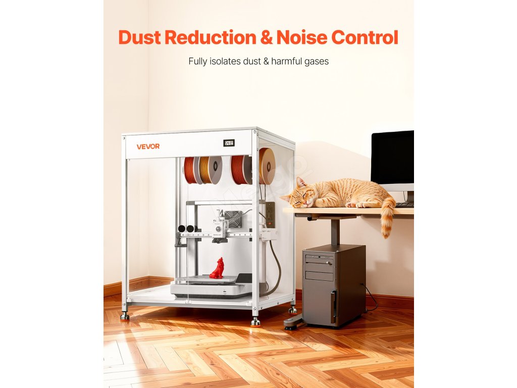 Vďaka prachuvzdornej uzavretej konštrukcii s ventilačným systémom dokáže kryt tlačiarne vyhnať dym a prach, čím sa udržiava čistý stav. Je ideálny pre vlákna PLA, TPU a ABS a zároveň chráni deti alebo domáce zvieratá pred časťami s vysokou teplotou, čím zvyšuje bezpečnosť.