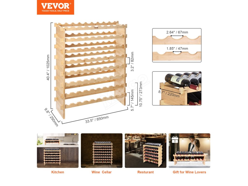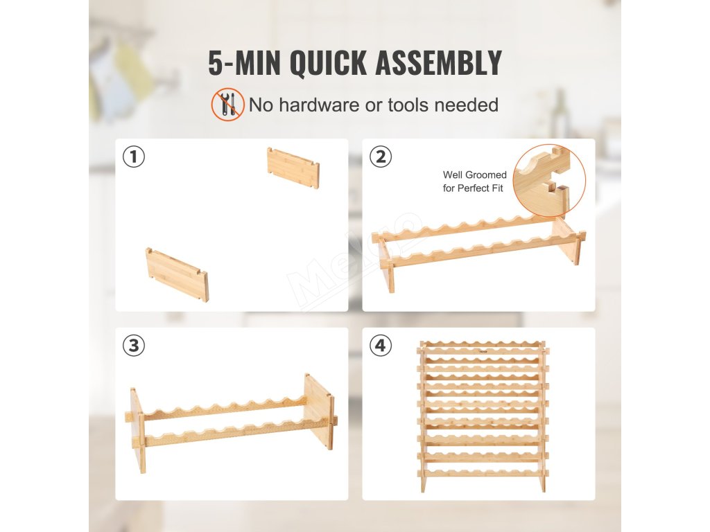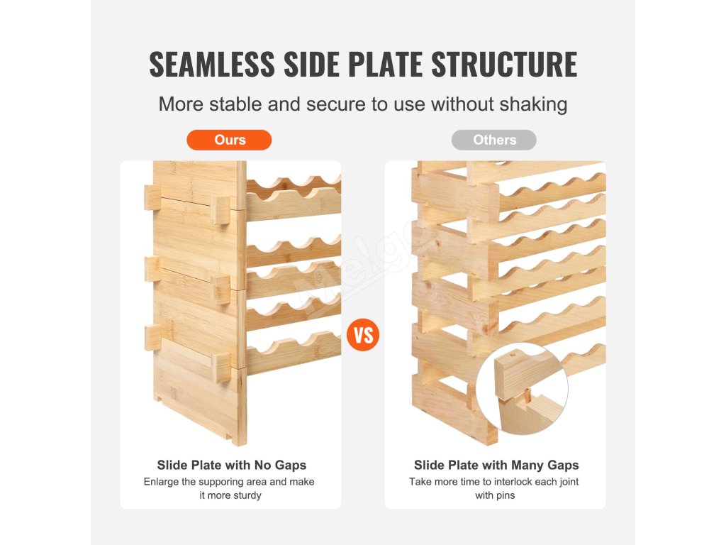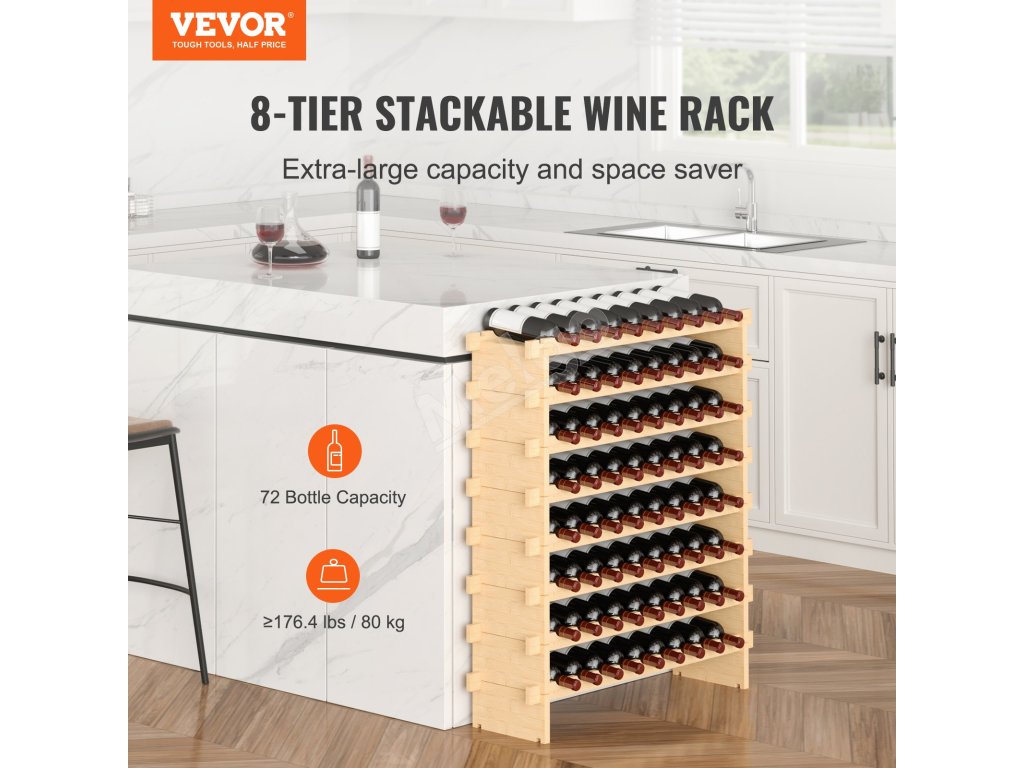 Stohovateľný modulárny stojan na 72 fliaš z bambusu, 8 úrovní