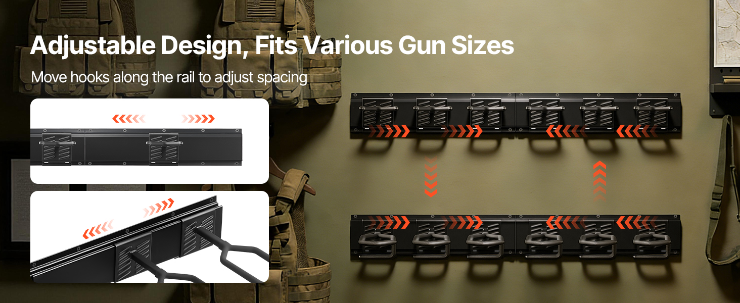 Nezávisle umiestnené horné a dolné panely umožňujú flexibilné nastavenie rozstupov, aby vyhovovali zbraniam rôznych dĺžok. Náš nástenný držiak na zbrane vytvára bezpečné a prehľadné usporiadanie úložného priestoru.