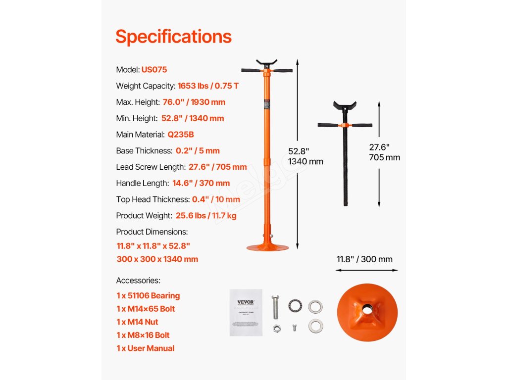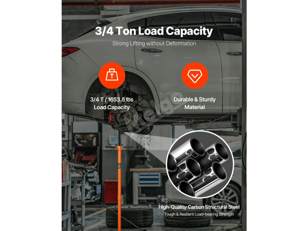 Robustná nosnosť 3/4 tony (1653,5 kg) poskytuje silu a spoľahlivosť potrebnú na zdvíhanie automobilov. Tento stojan pod zdvihák je skonštruovaný z ocele Q235B a je odolný voči deformáciám a ohýbaniu. Je to ideálny a spoľahlivý nástroj na zdvíhanie vozidiel.