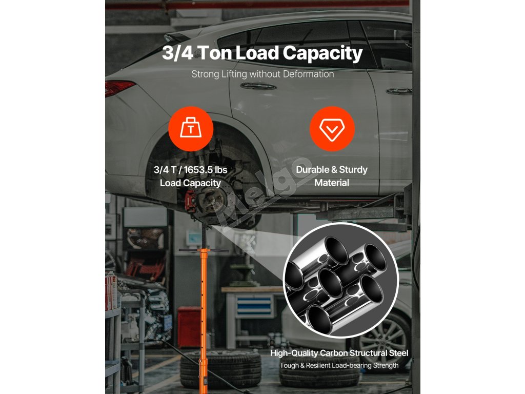 Robustná nosnosť 3/4 tony (1653,5 kg) poskytuje silu a spoľahlivosť potrebnú na zdvíhanie automobilov. Tento stojan na zdvíhanie je skonštruovaný z ocele Q235B a je odolný voči deformáciám a ohýbaniu. Je to ideálny a spoľahlivý nástroj na zdvíhanie vozidiel.