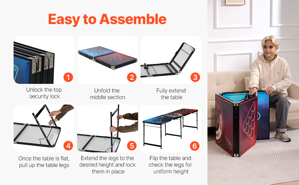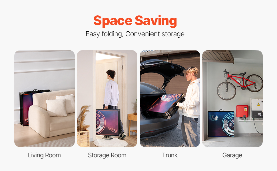 Keď sa tento prenosný pivný pingpongový stôl nepoužíva, možno ho ľahko uložiť do obývačky, skrine, kufra auta alebo garáže, čím ušetríte cenné miesto. Či už ide o rodinný herný večer, stretnutie s priateľmi alebo grilovanie na záhrade, dá sa rýchlo nastaviť a prinesie nekonečnú zábavu na vašu párty.