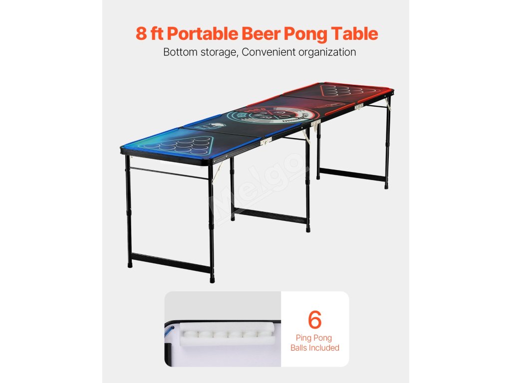 Prenosný beer pong stôl 8 foot skladací nastaviteľná výška led svetlá