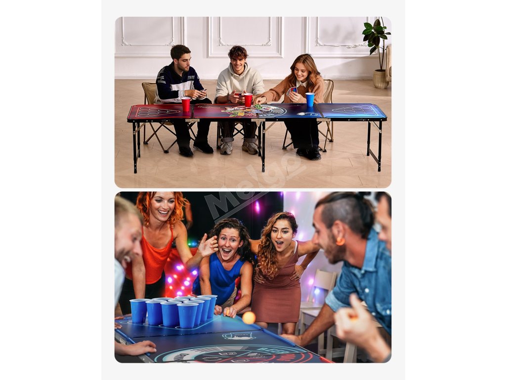 Keď sa tento prenosný pivný pingpongový stôl nepoužíva, možno ho ľahko uložiť do obývačky, skrine, kufra auta alebo garáže, čím ušetríte cenné miesto. Či už ide o rodinný herný večer, stretnutie s priateľmi alebo grilovanie na záhrade, dá sa rýchlo nastaviť a prinesie nekonečnú zábavu na vašu párty.