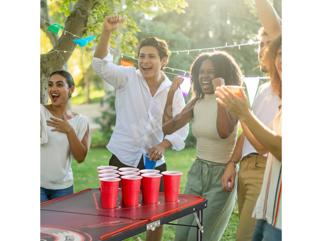 Tento kempingový stôl na beer pong sa rýchlo a jednoducho nastavuje. Či už ide o párty na záhrade, zábavu v interiéri alebo kempovanie, na hru budete pripravení v okamihu.