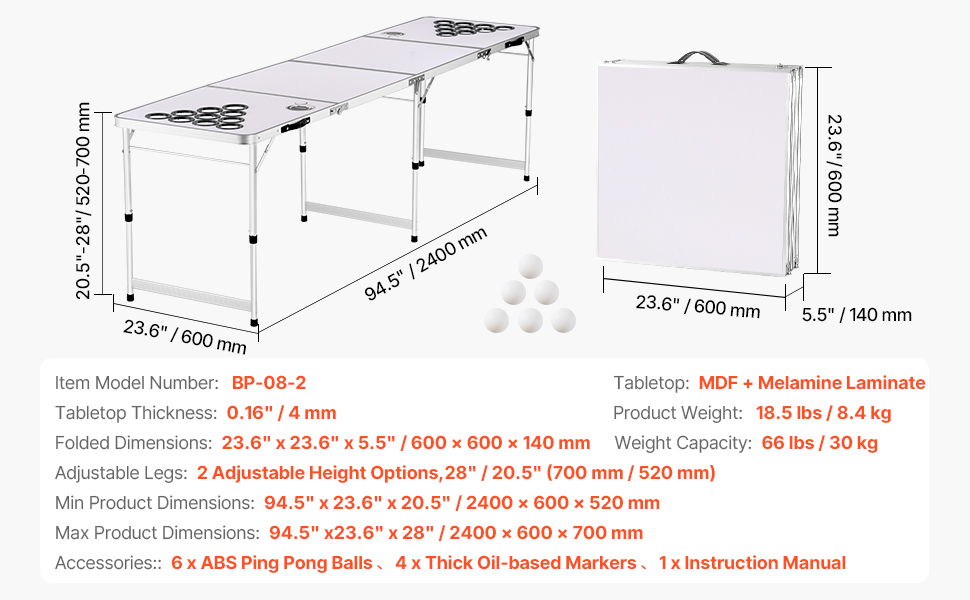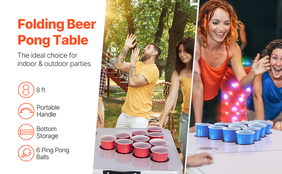 Tento 8 ft skladací pivný pingpongový stôl je vybavený rukoväťou na prenášanie a spodným úložným priestorom spolu so 6 pingpongovými loptičkami, čo z neho robí ideálnu voľbu na párty.