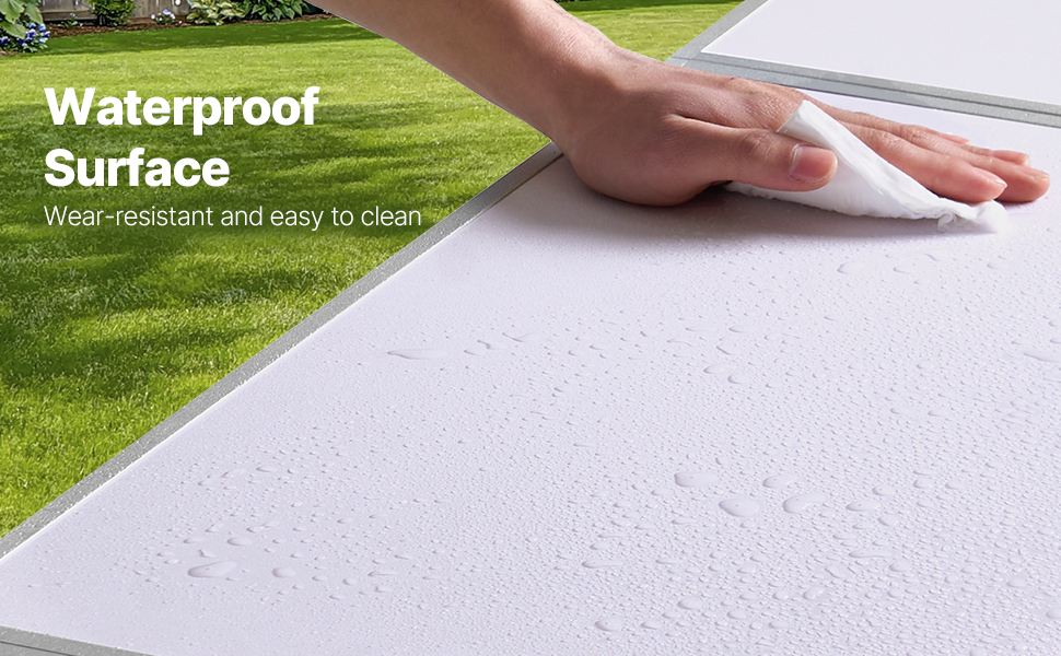 Vďaka povrchu s vodoodolnou povrchovou úpravou je tento skladací pingpongový stôl nielen vysoko odolný, ale sa aj ľahko čistí. Stačí rýchle utretie a stolová doska sa ľahko obnoví do čistoty, čo ponúka pohodlie pri vašich večierkoch a každodennom používaní.