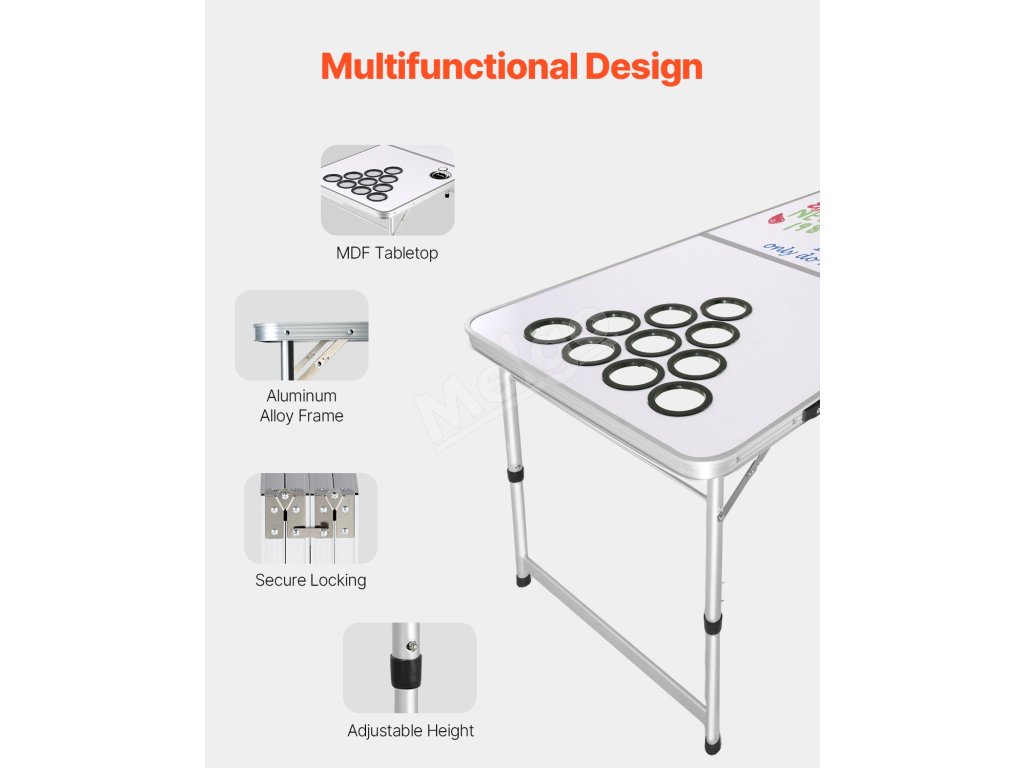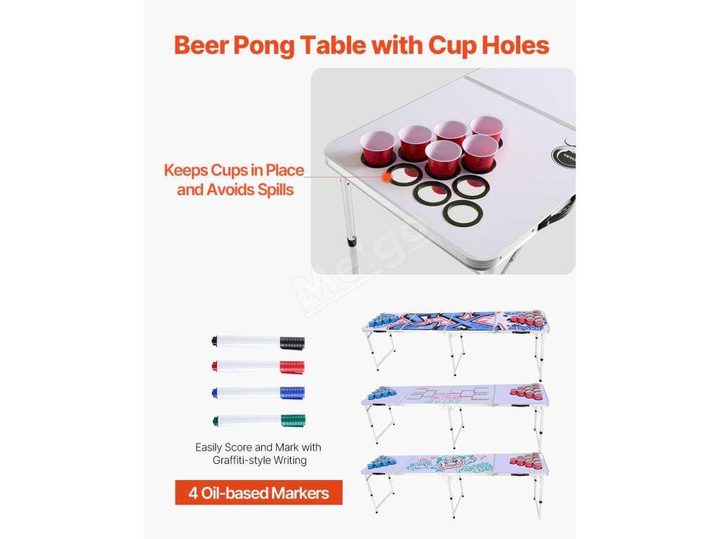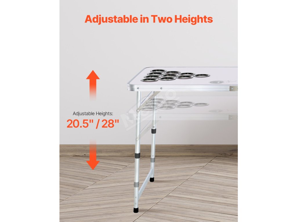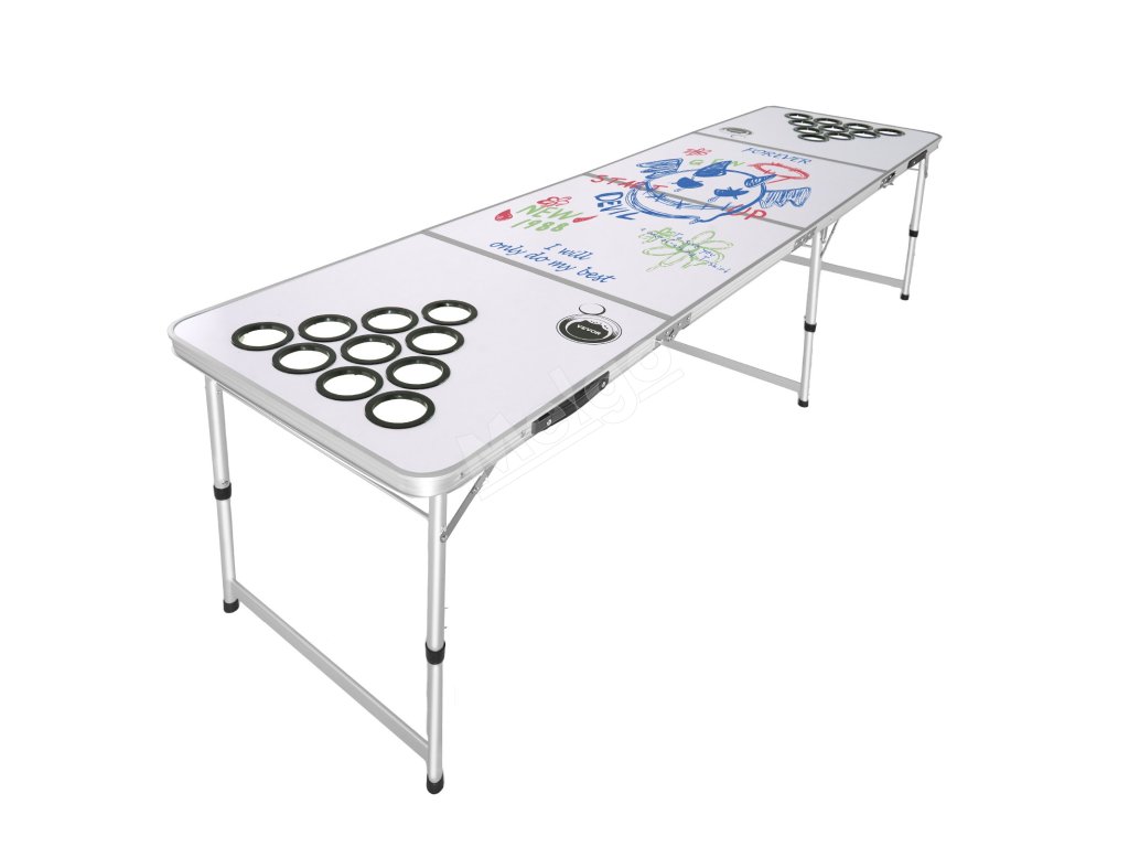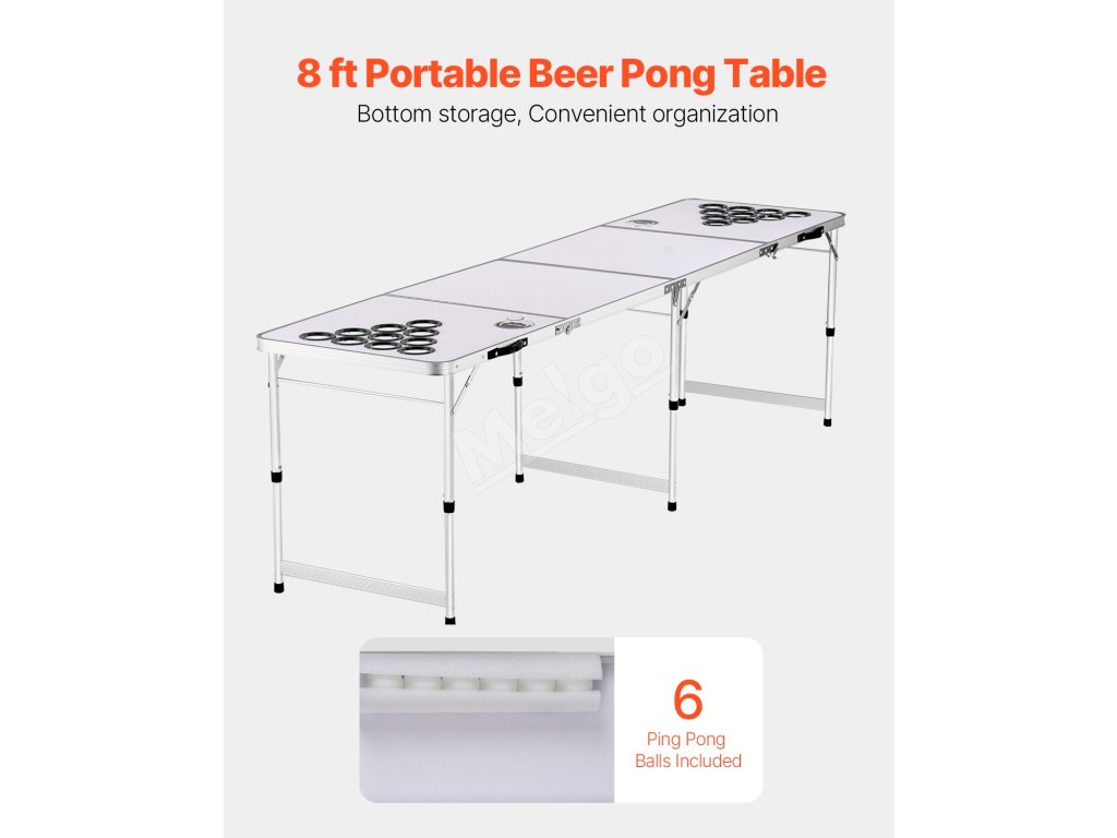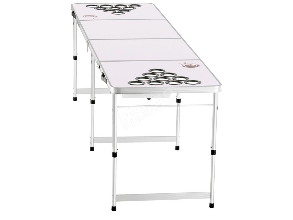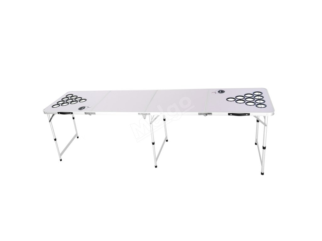 Stôl beer pong 8 foot, skladací, s otvormi, nastaviteľná výška, biely