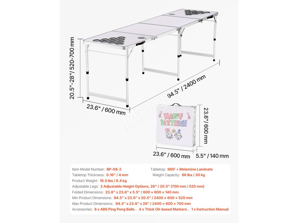 Tento 8 ft skladací pivný pingpongový stôl je vybavený rukoväťou na prenášanie a spodným úložným priestorom spolu so 6 pingpongovými loptičkami, čo z neho robí ideálnu voľbu na párty.