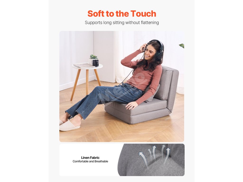 Táto podlahová leňoška je nielen skladacia na úsporné uskladnenie pri stene, ale po rozložení môže ležať aj na plocho, takže sa ľahko zmestí pod posteľ alebo pohovku bez toho, aby zaberala ďalšie miesto. Vyhovuje potrebám rôznych používateľov na uskladnenie.