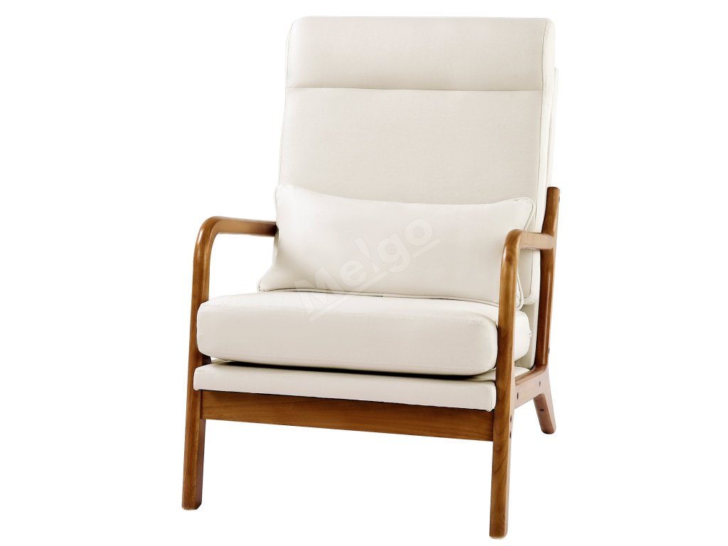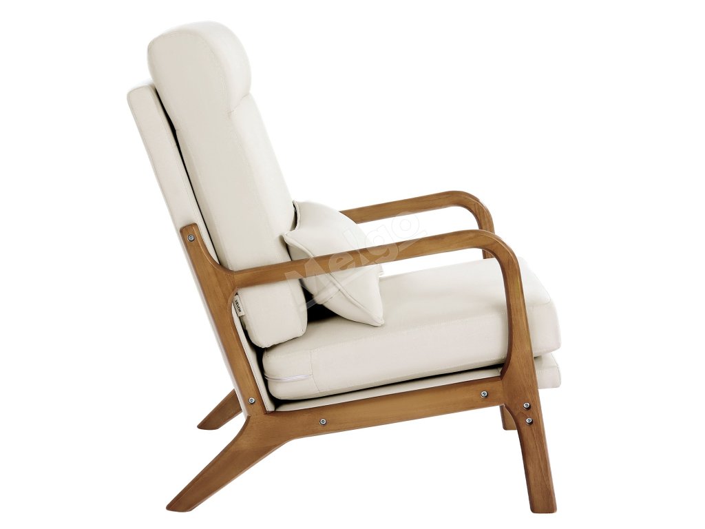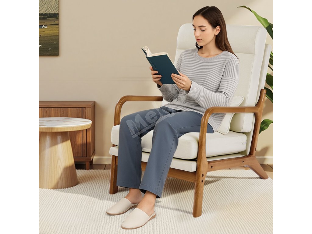 Kreslo s vysokým operadlom, masívny rám, ľan, 13,5 cm poduška