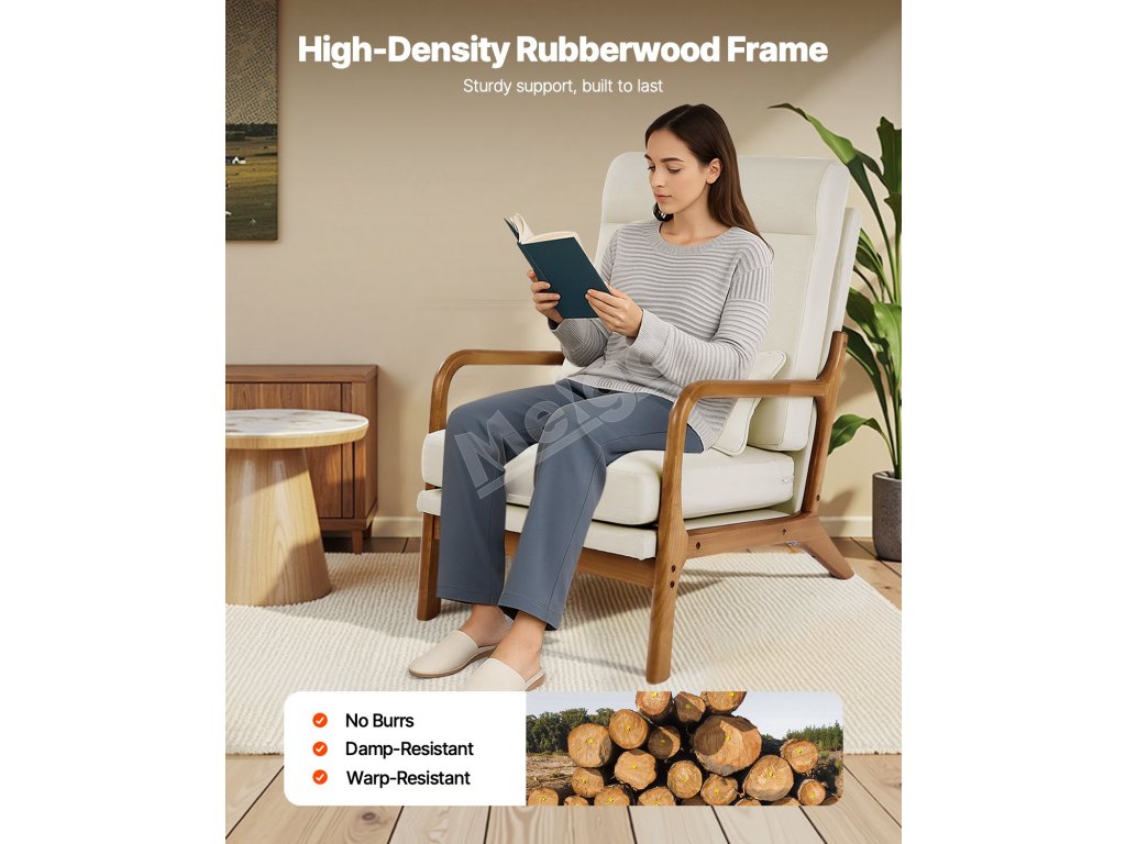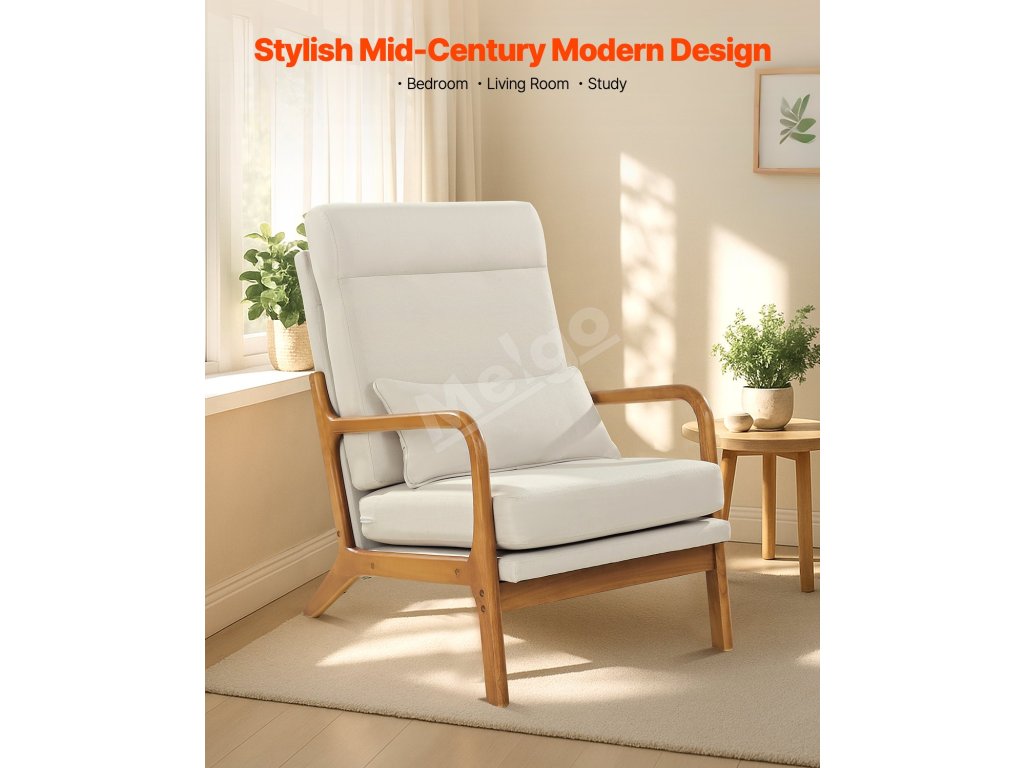 Toto drevené akcentové kreslo kombinuje klasický moderný štýl polovice storočia s vysokokvalitným rámom z masívneho dreva, ktorý zaručuje pevnosť a odolnosť. Uhol operadla 105° a pena s vysokou hustotou poskytujú výnimočný komfort, čo z neho robí ideálnu voľbu pre domáce priestory.