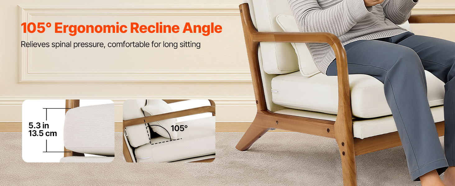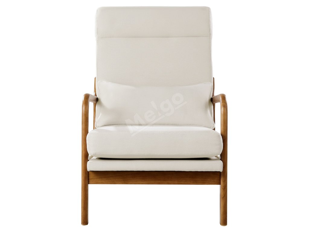 Toto drevené akcentové kreslo má uhol operadla 105° a vysoko elastickú penu, ktorá poskytuje vynikajúcu oporu chrbtice a pohodlie. Zosilnený, rozšírený vankúš ponúka extra priestor, ideálny na sedenie so skríženými nohami alebo ležanie.