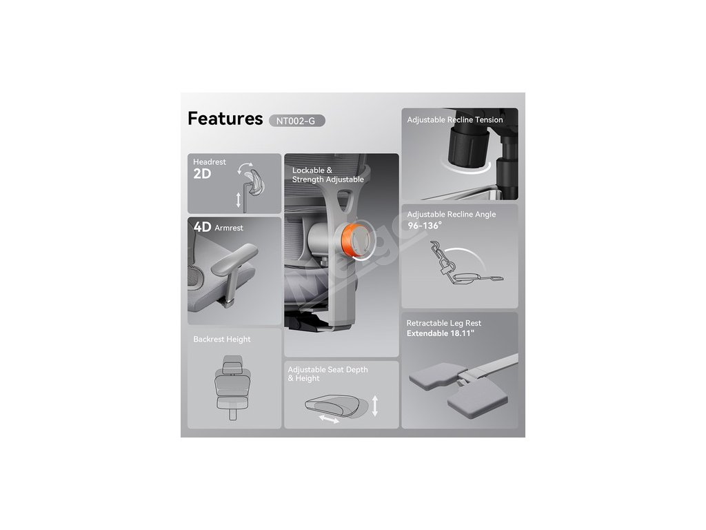 Všeobecné | Značka: NEWTRAL Typ: Ergonomická stolička Model: NT002 Farba: sivá |