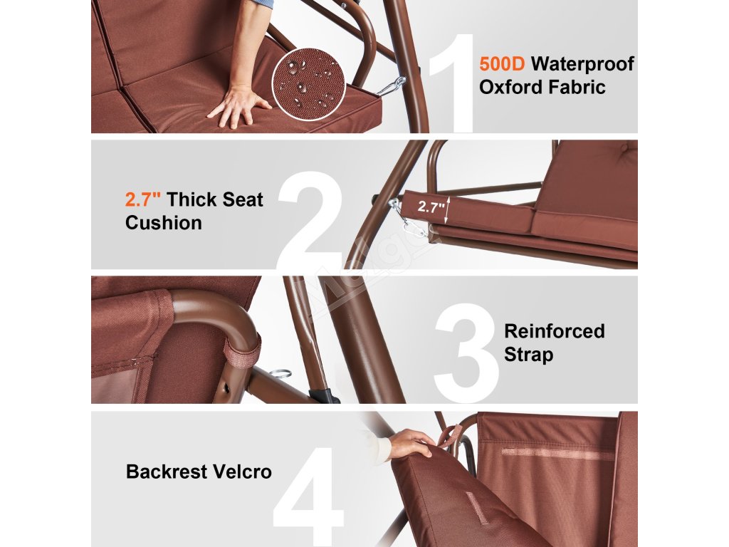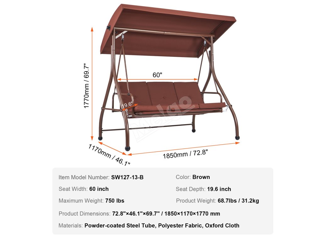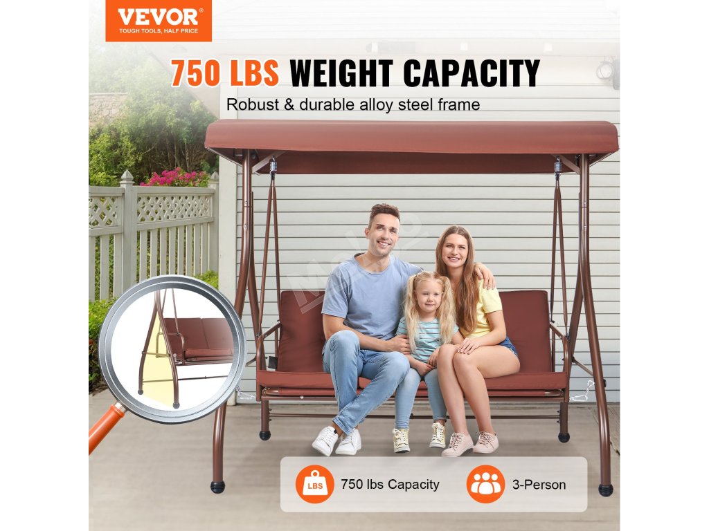 Táto vonkajšia verandová hojdačka, vyrobená zo zliatiny ocele, má robustnú konštrukciu v tvare A, ktorá unesie až 750 kg a pojme 3 osoby na trávenie voľného času vonku.