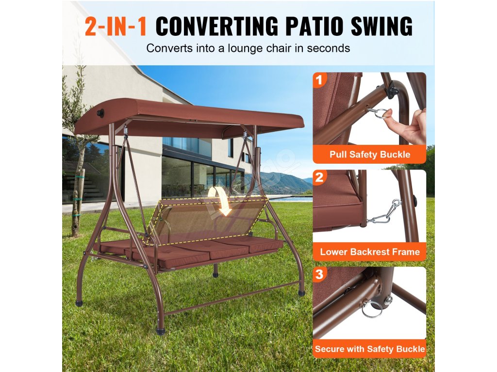 72 x 47in Vonkajšia konvertibilná veranda hojdačka so stojanom