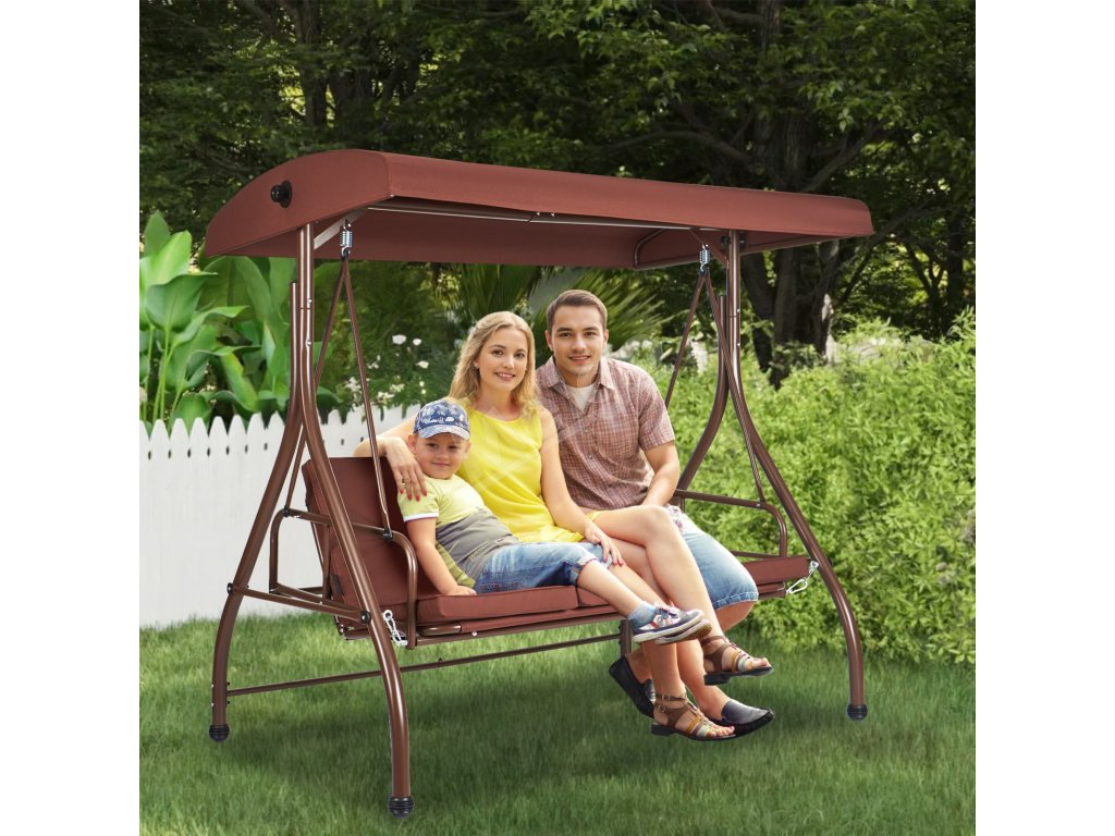 3-miestna záhradná hojdačka nastaviteľná strieška, odnímateľné vankúše