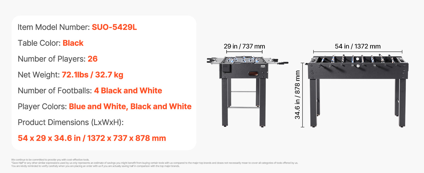 Klasický dizajn a farebné prevedenie sa hodia do každého domáceho prostredia, zapadnú do pivnice, herne alebo bytu ako stolová hra. Nemusíte sa obávať poškodenia obalu, vďaka čomu je náš stolný futbal cenným darčekom pre vašich blízkych priateľov a rodinu.