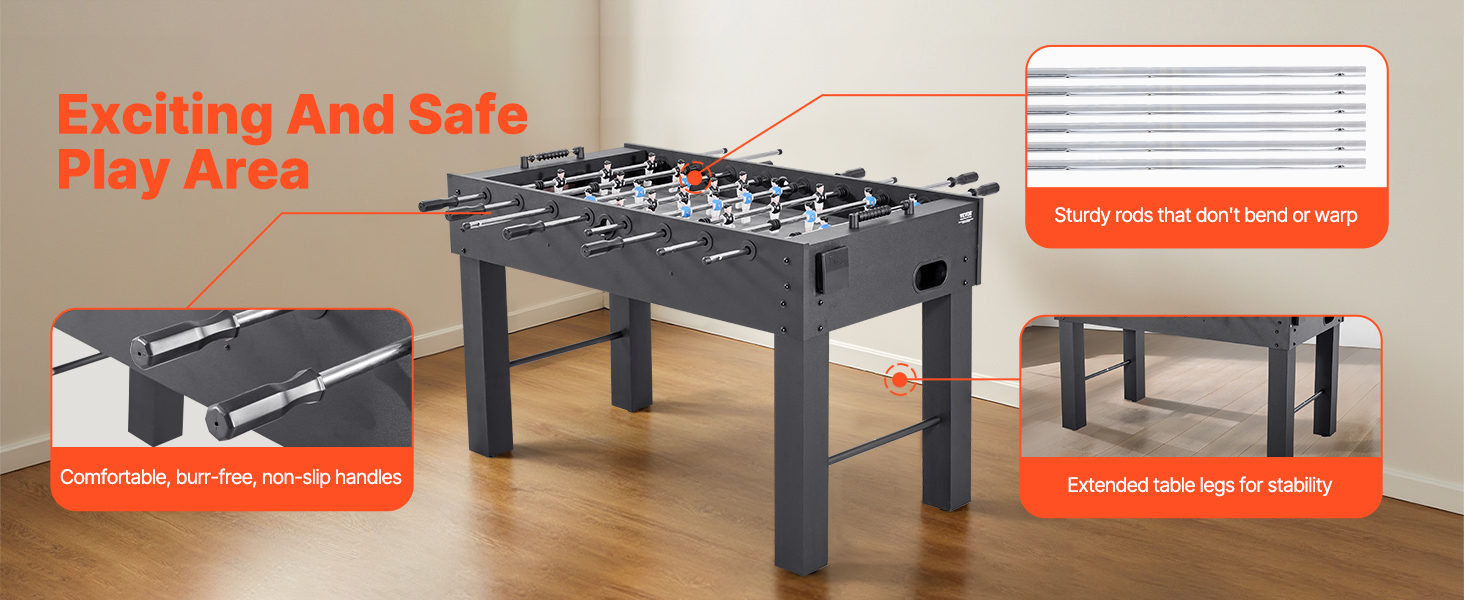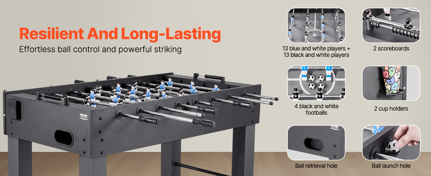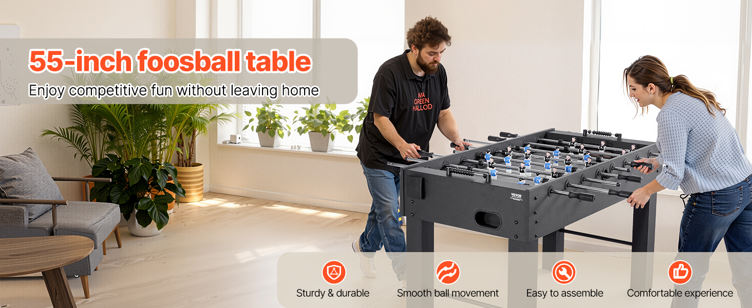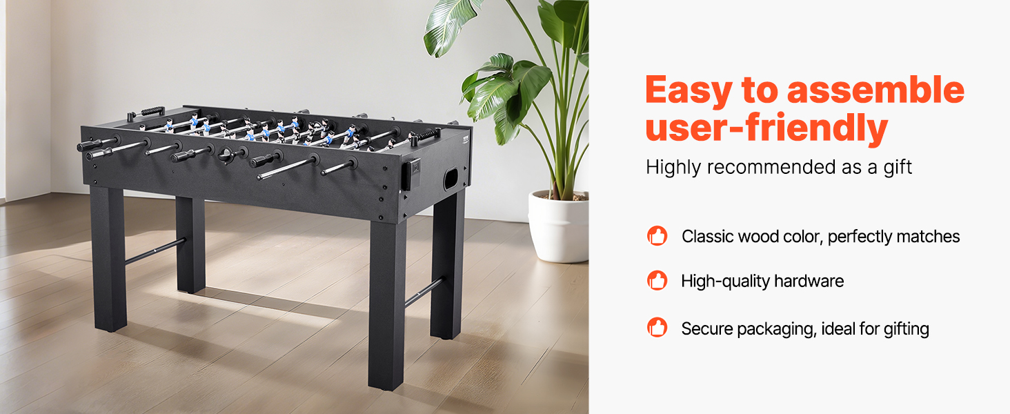 Naše stolíky na stolný futbal sa jednoducho montujú, čo znamená, že rodinné herné večery a barové turnaje sa môžu začať okamžite!
