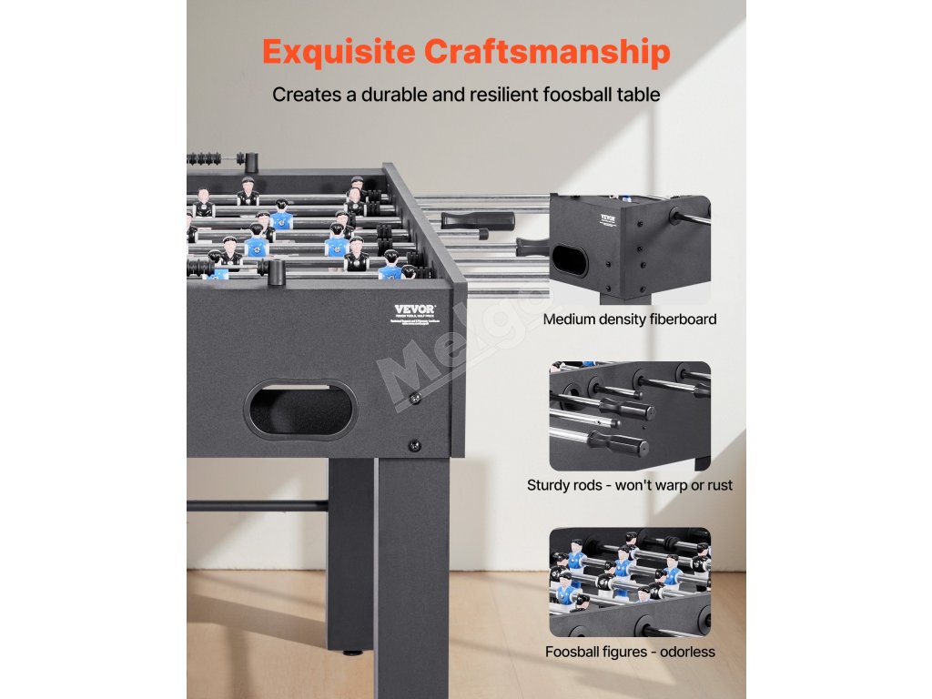 Klasický dizajn a farebné prevedenie sa hodia do každého domáceho prostredia, zapadnú do pivnice, herne alebo bytu ako stolová hra. Nemusíte sa obávať poškodenia obalu, vďaka čomu je náš stolný futbal cenným darčekom pre vašich blízkych priateľov a rodinu.