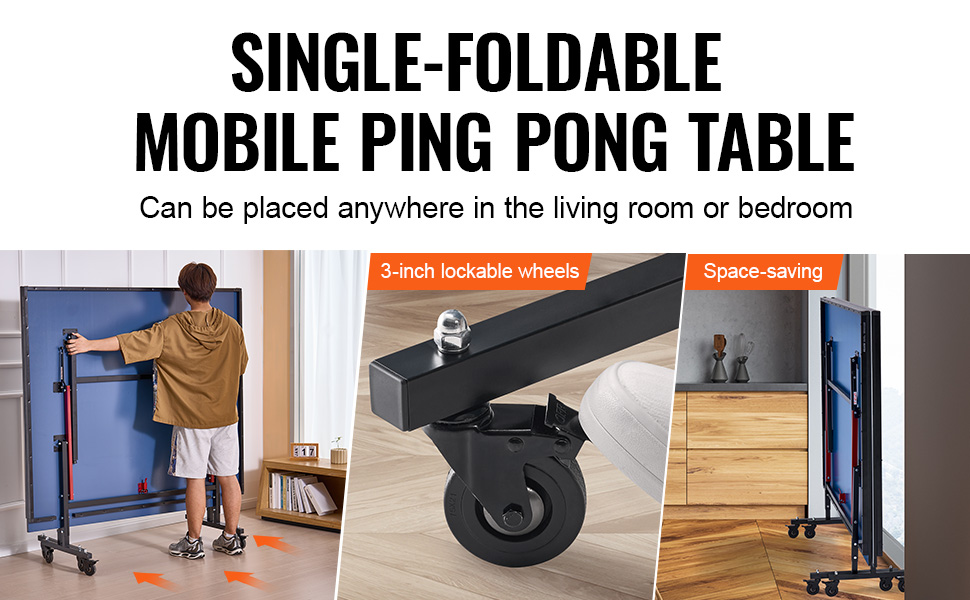 Interiérový prenosný pingpongový stôl sa môže používať v interiéri, na kurtoch, večierkoch, stretnutiach atď. kde je potrebný stôl. Dodáva sa s uzamykateľnými kolieskami na jednoduchú prepravu.