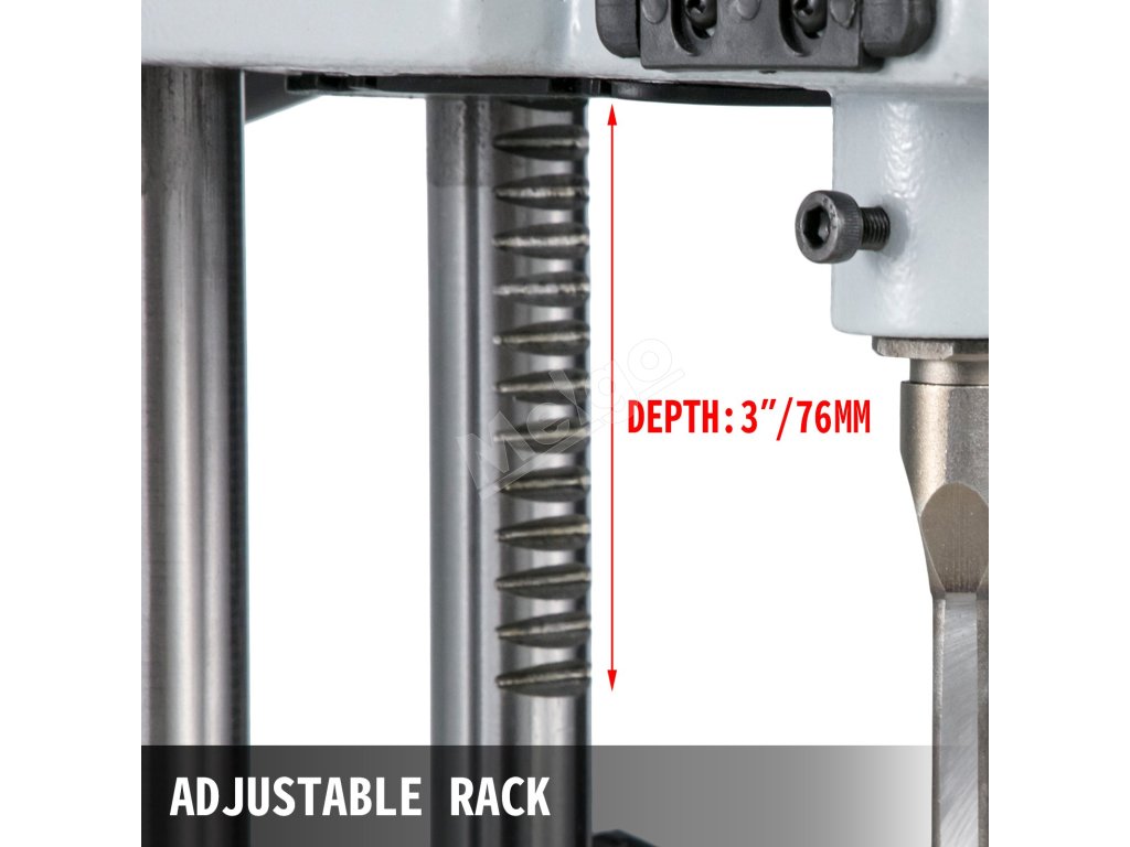 Tento hĺbkotlačový stroj je vybavený nastaviteľnými stojanmi na rýchle nastavenie hĺbkového limitu na dosiahnutie rovnomernej hĺbky hĺbenia, ktorú možno stlačiť až do 3"/ 76 mm.